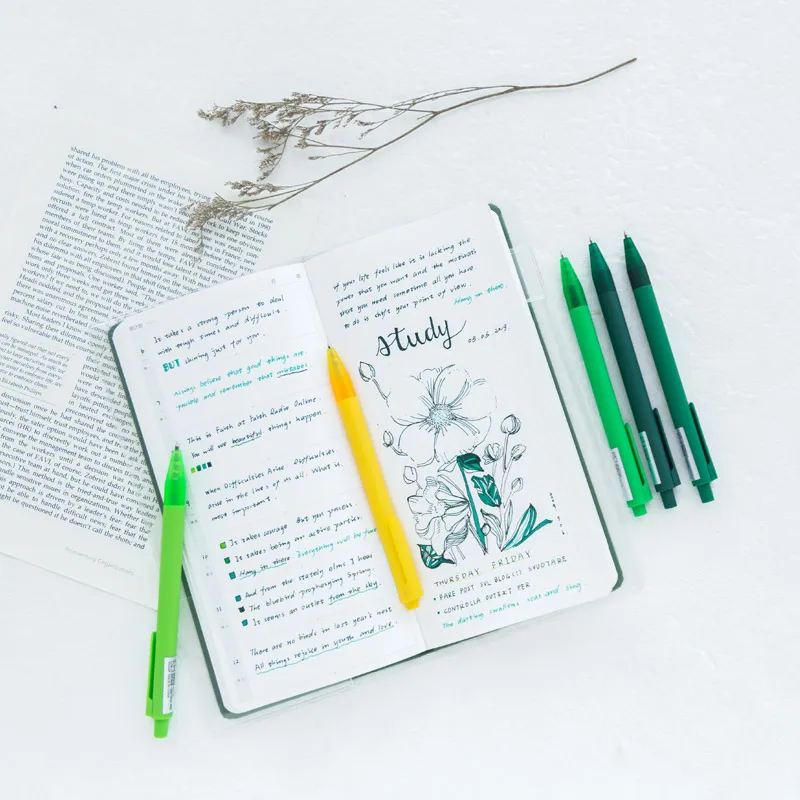 Я люблю этот пакет из пяти пузырьков зеленоватого тона. Цвета очень яркие и читаемые. Эти ручки идеально подходят для прикосновения к цвету ваших нот, как рисовать и рисовать. Чернила имеют кремовую, быстро сохнущую нанесение. Вы можете сказать, что качество ручек очень хорошее. Я очень рекомендую их.