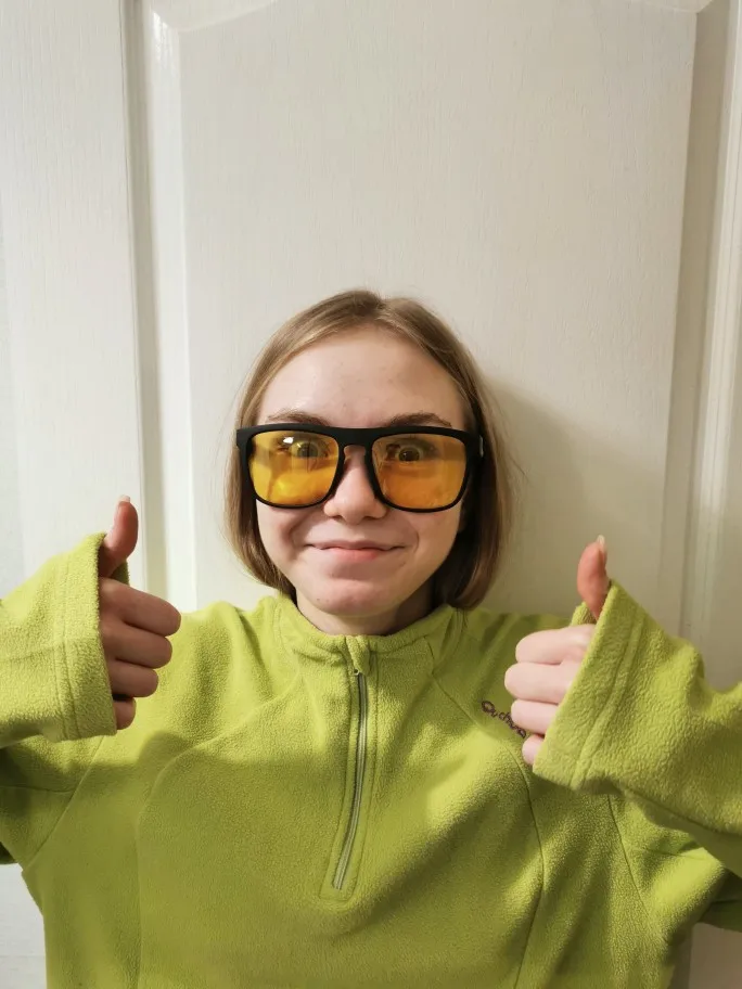 классные, красивые очки. жёсткая оправа, оч хорошо сидят, жёлтые стекла отсекают синий спектр, но блики от света все равно есть. Возьму ещё монохромные! Рекомендую!