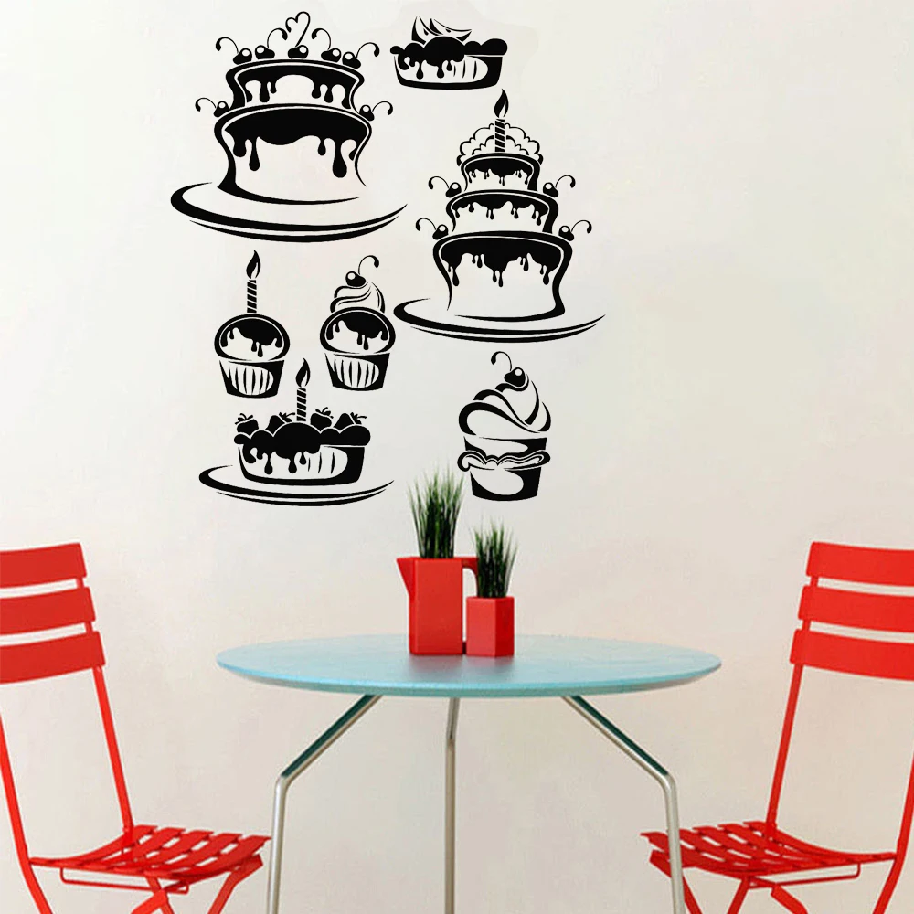 Виниловая наклейка на стену для торта, десерта, магазина, кондитерских изделий, сладостей, Пирогов, украшение на день рождения, выпечка, наклейка s