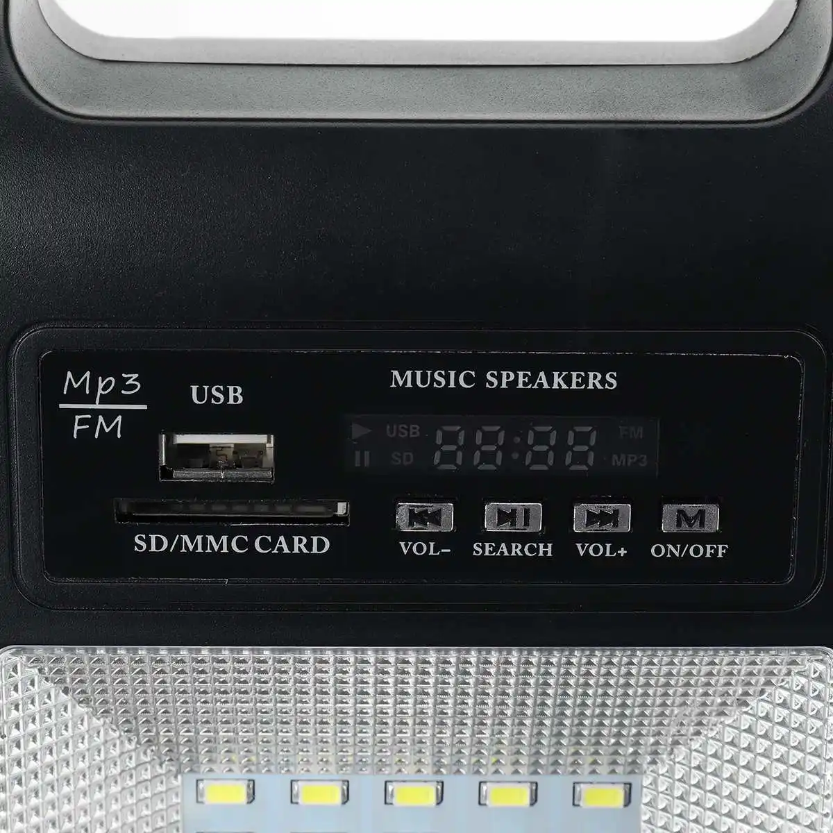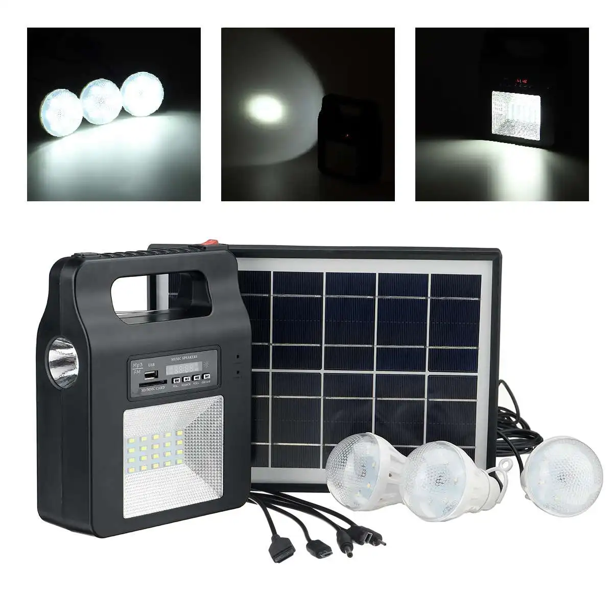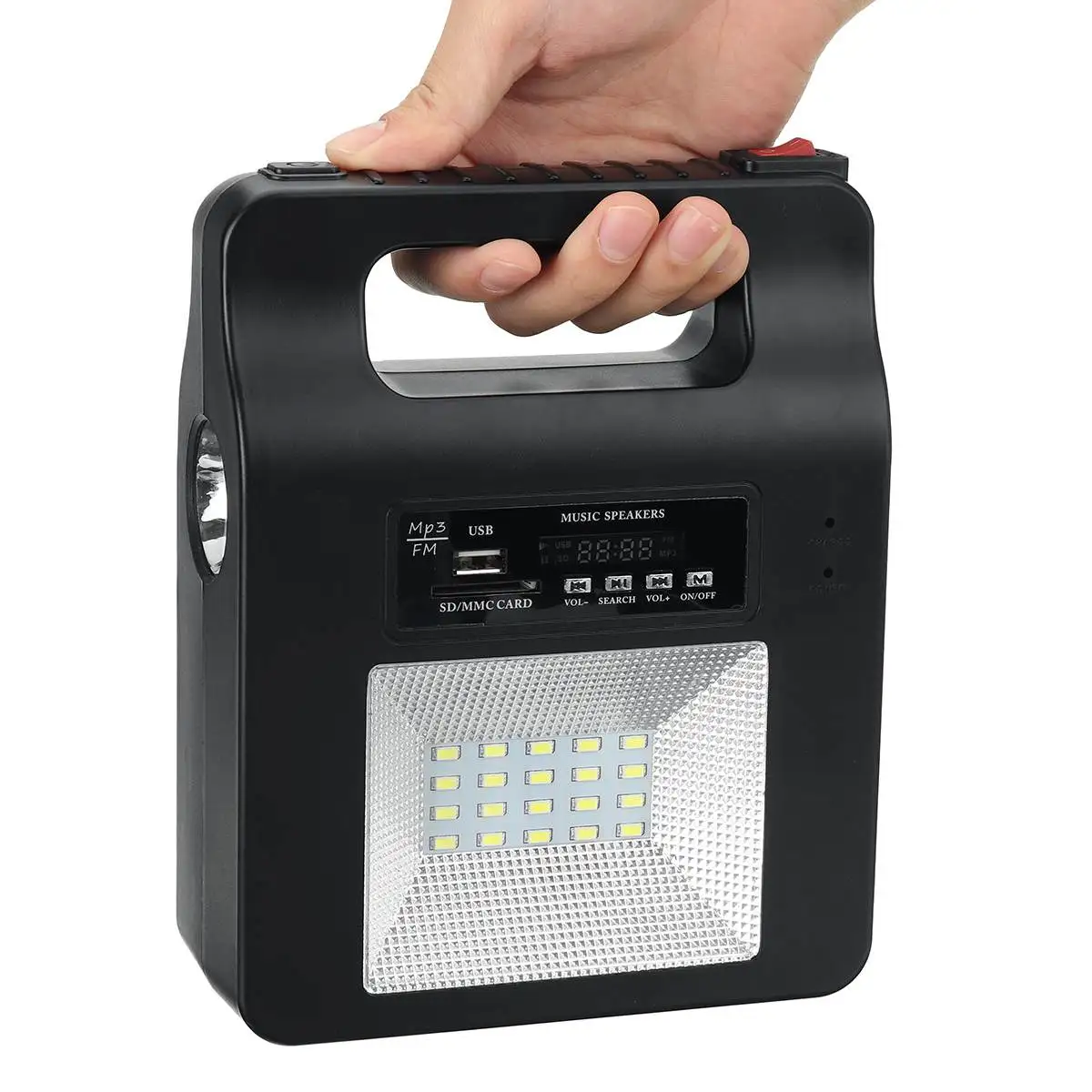 Особенности:-Поддержка FM и поддержка U диска, sd-карты, чтобы слушать то, что вы хотите-Стерео динамик, низкий уровень шума передачи, звук хороший-Многофункциональный солнечный генератор, солнечная зарядка, защита окружающей среды и энергосбережение.-Идеалы для внутреннего освещения, наружного освещения, отключения питания, домашнего освещения, площади без электричества.-С функцией зарядки мобильный телефон-Он может заряжать мобильные телефоны, MP3, MP4, цифровые камеры и другие электронные продукты.-Оснащен зарядным адаптером, он также может быть заряжен электрическим, если вы не используете солнечную панель.-Солнечная панель должна поставить на солнце 6-7 часов, батарея будет полна энергии.-Множественная защита: безопасная в использовании, идеально подходит для защиты безопасности вашей семьи.-Оснащен usb-кабелем 5 в 1 и солнечной панелью 5 Вт, длина кабеля 3 метра.-С тремя 3 вт высокий яркий белый светодиодный лампы, низкое потребление, каждый с 3 м кабелем и выключателем. Постоянный ток IC привод, хорошая стабильность.