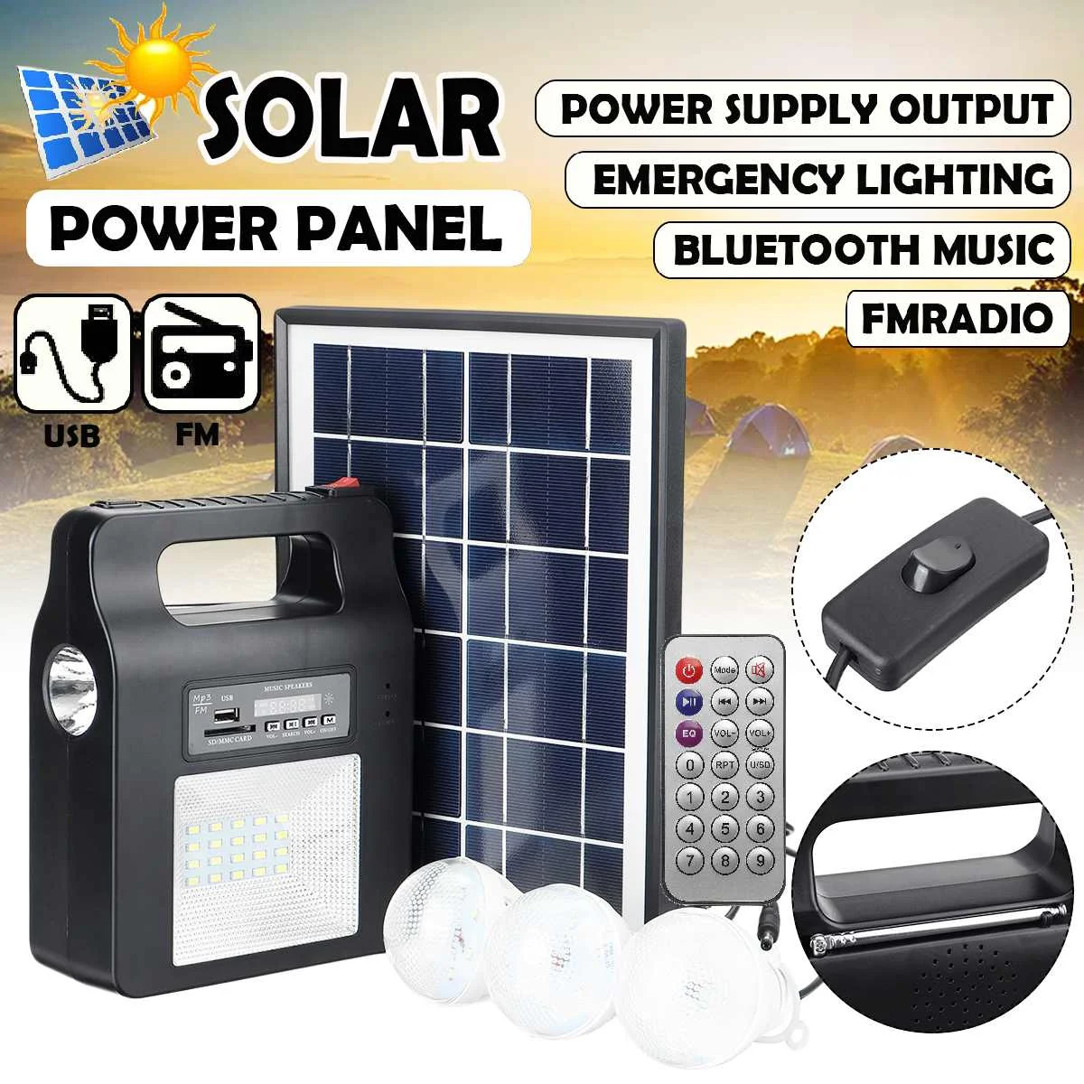 Посылка включает в себя:-1 x Панель солнечной энергии-1x FM радио-3 x светодиодный светильник с проводом-1 пульт дистанционного управления-1 х адаптер питания-1x5 Spilt USB кабель-Руководство пользователя-1 шт.