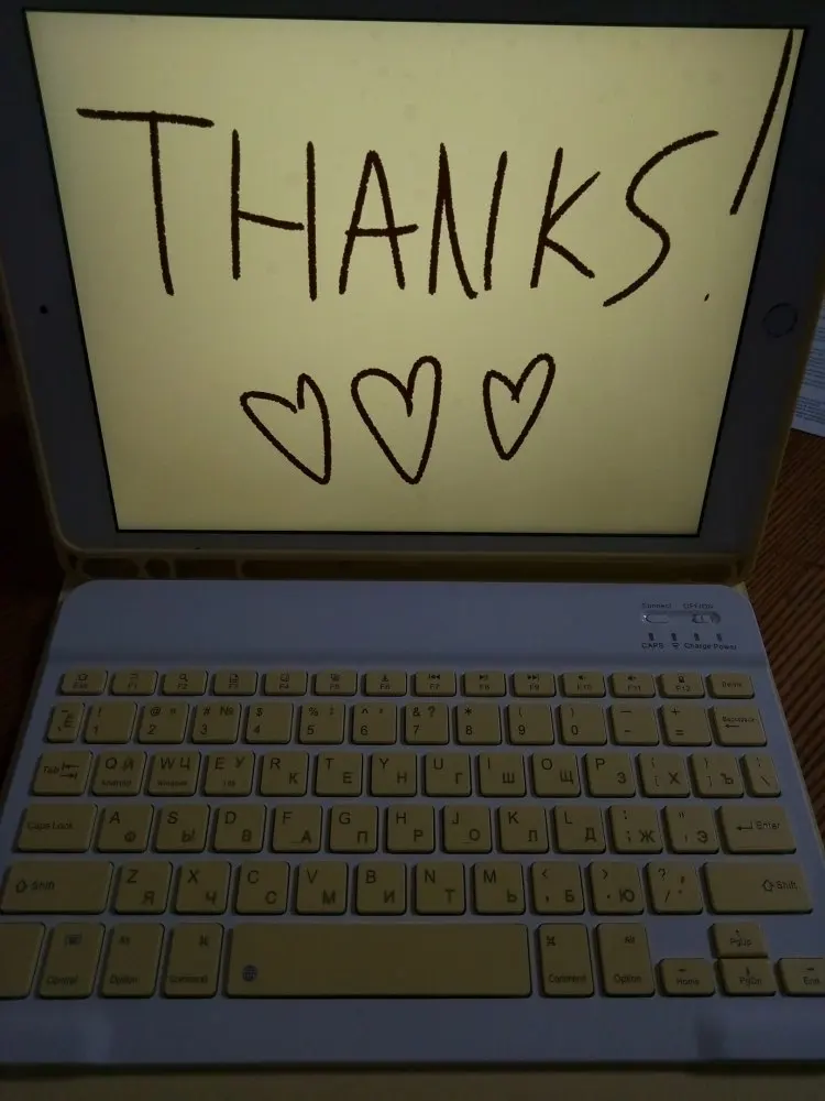 Товар сам по себе очень хороший. Функционал клавиатуры почти как на компьютере, едиственное - сложно переключать языки: нужно открыть сенсорную клавиатуру на айпаде и переключить язык уже там. Вместе с чехлом дарят защитную плёнку, мини тряпочку для неё и небольшую ручку, которая на удивление работает. Пришло все хорошо запокованно, НО. Я заказала клавиатуру именно у этого продавца, поскольку все русские отзывы утверждали, что им чехол пришёл очень быстро, недели за 2. А мне пришлось ждать больше месяца. Поскольку клавиатура нужна была мне срочно, это большой недостаток, хотя может "повезло" так только мне.