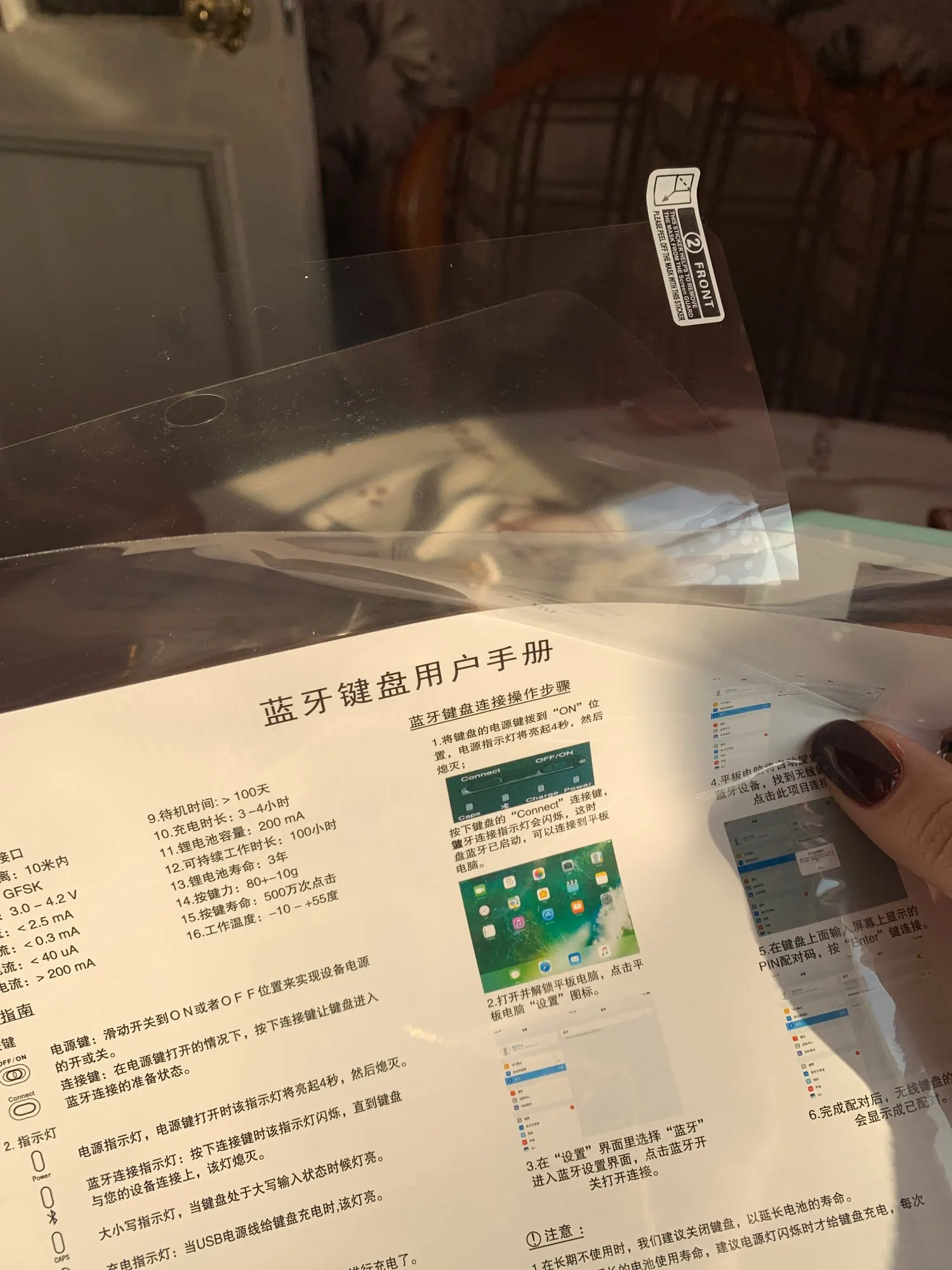 Нечего сказать идеально прибыл в 7 дней клавиатура в fr, и они даже дали мне небольшой стилус и защитную пленку для экрана в подарок
