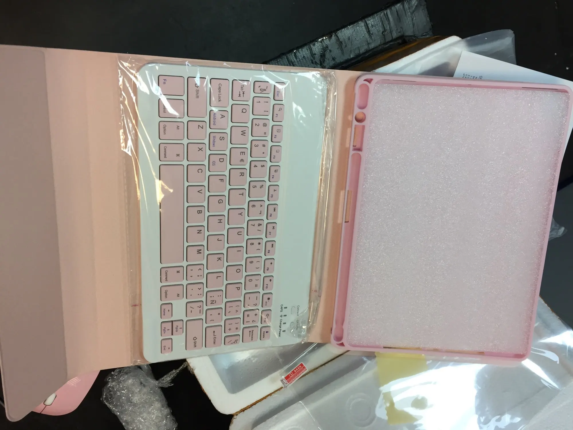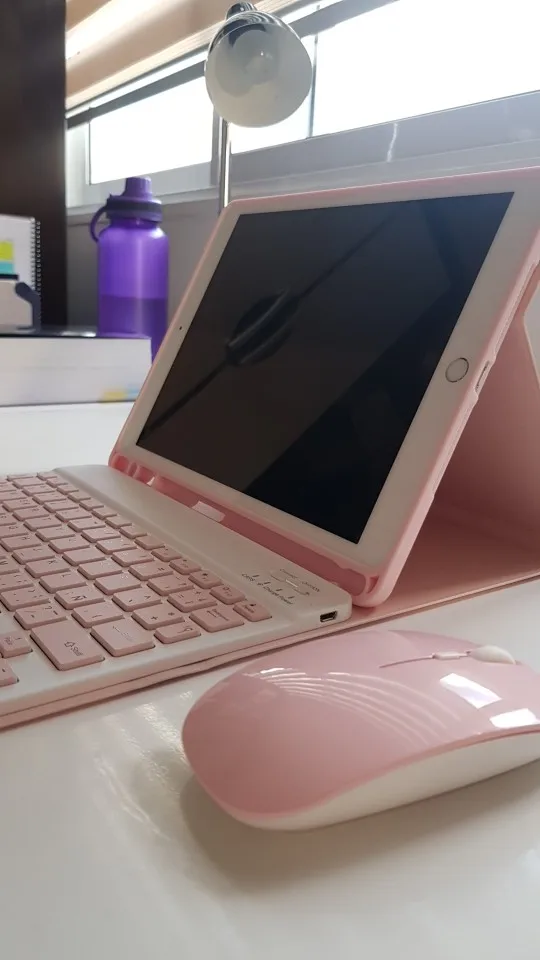 Я люблю это. Очень удобный чехол, розовый цвет, с клавиатурой и мышью для игры. Лучше, чем я ожидал.
