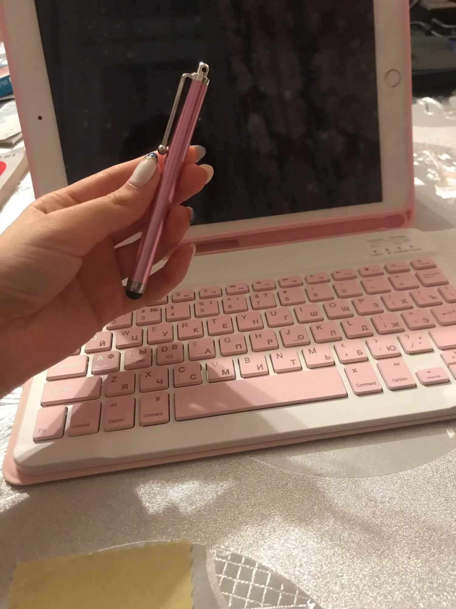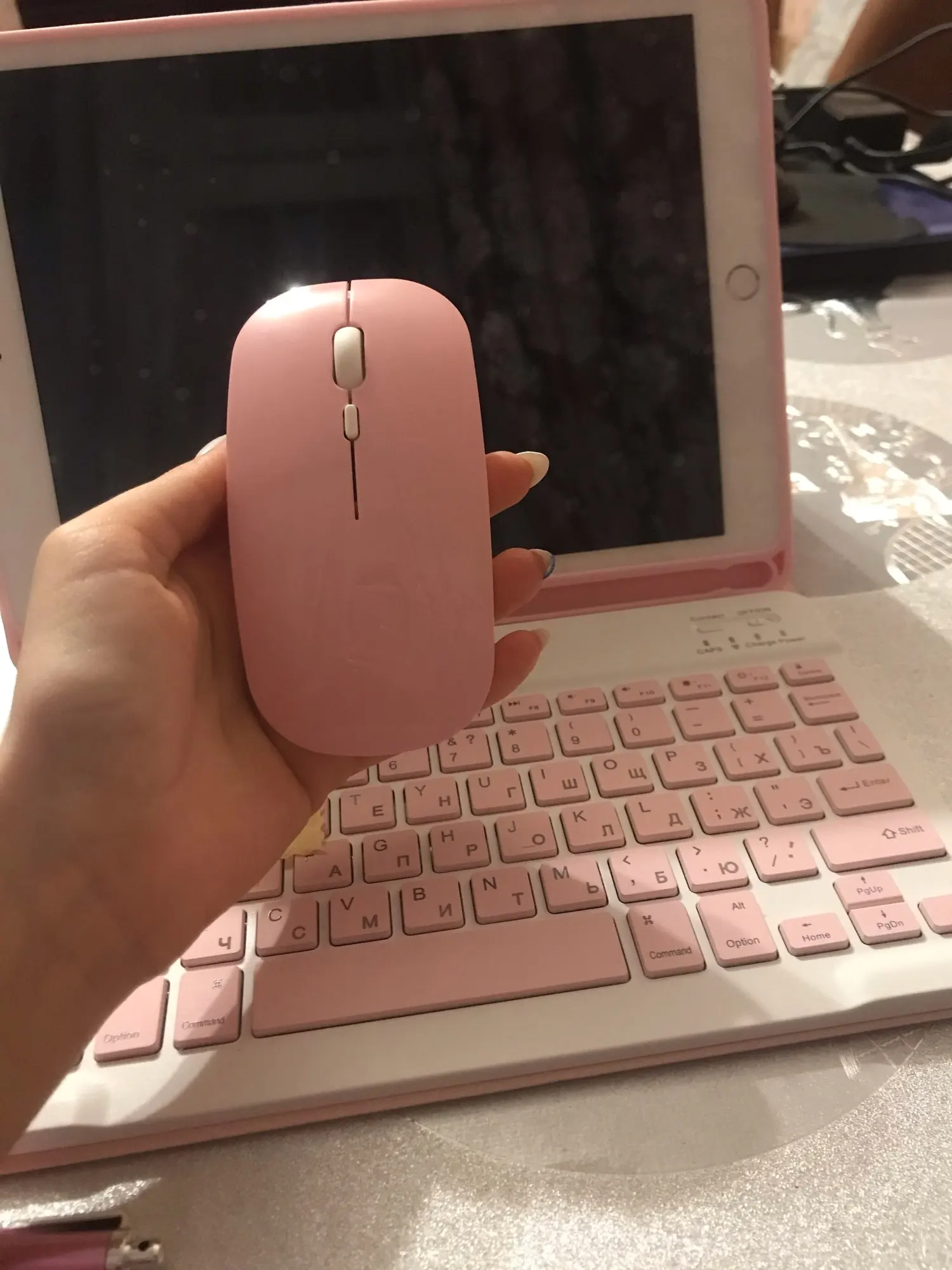 Действительно потрясающе. Я спрашиваю розовый цвет и действительно очень красивый, качество отличное. Я очень доволен своим продуктом. Я получил клавиатуру, мышь, все кабели и в подарок стилус и протектор экрана. Вы можете легко напечатать на клавиатуре. Это очень удобно. Я очень благодарен продавцу.