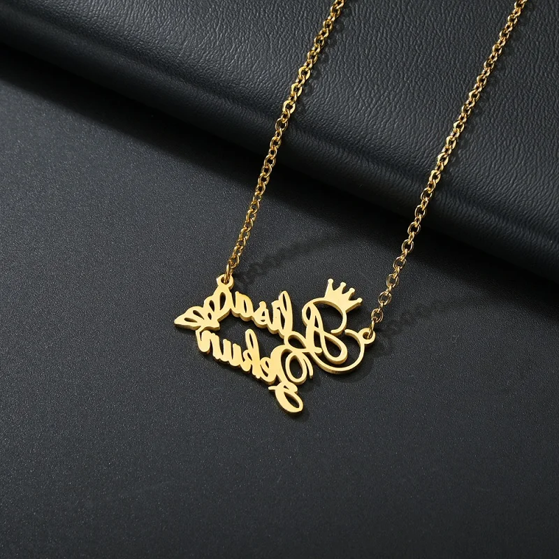 Название: матовое ожерелье с двумя именами на заказ, персонализированные ожерелья из нержавеющей стали на заказ с бабочкой для женщин и девушек, ювелирные изделия, подарок