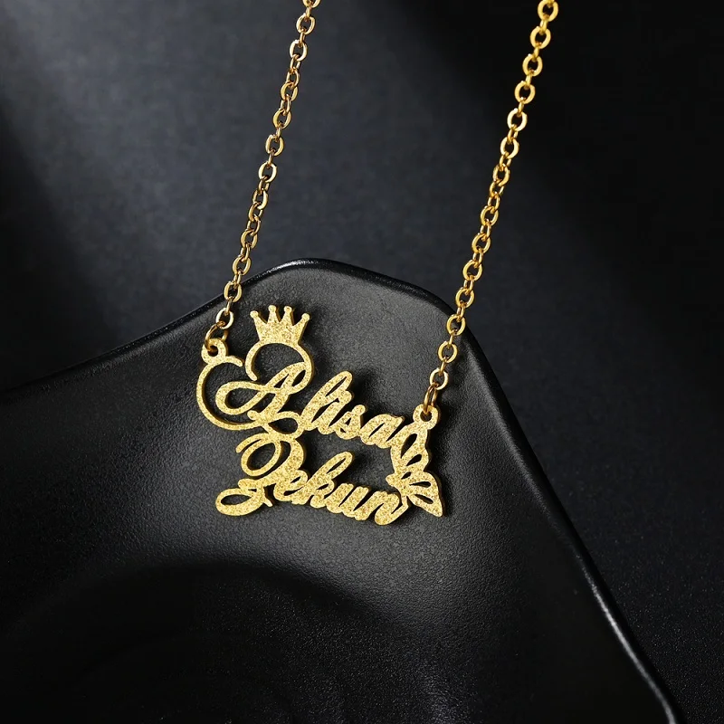Двухименное матовое ожерелье на заказ, персонализированные ожерелья из нержавеющей стали на заказ с табличкой с бабочкой для женщин и девушек, ювелирные изделия, подарок