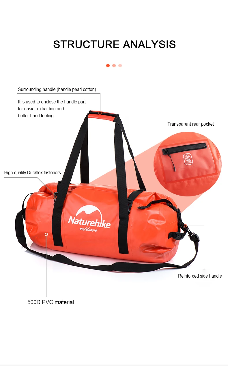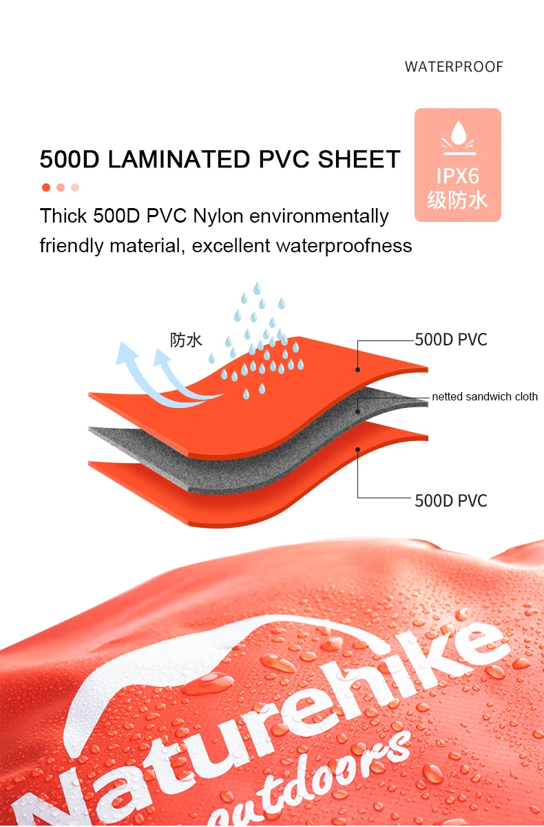 Бренд: NaturehikeЦвет: черный, оранжевый, желтыйЕмкость: 40л, 60л, 90Л, 120лОколо Вес: 40L (1,2 кг) 60L (1,4 кг) 90L (весом более 2 кг) 120L (2,2 кг)Материал сумки: 500D ПВХ сетка Зажимная тканьМатериал застежки: DuraflexУровень водонепроницаемости: 20000 ммПодходит для: улицы, треккинга, пляжа, катания на лодках, рафтинга и т. д.