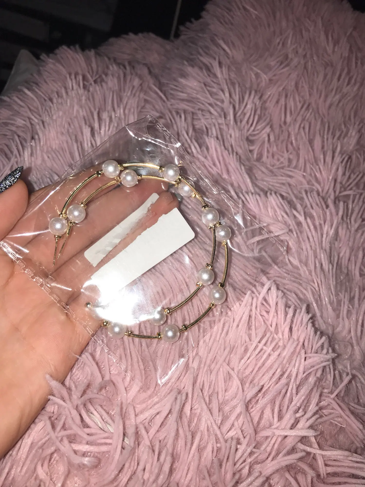 Женские серьги-кольца, с искусственным жемчугом, белого и черного ц...