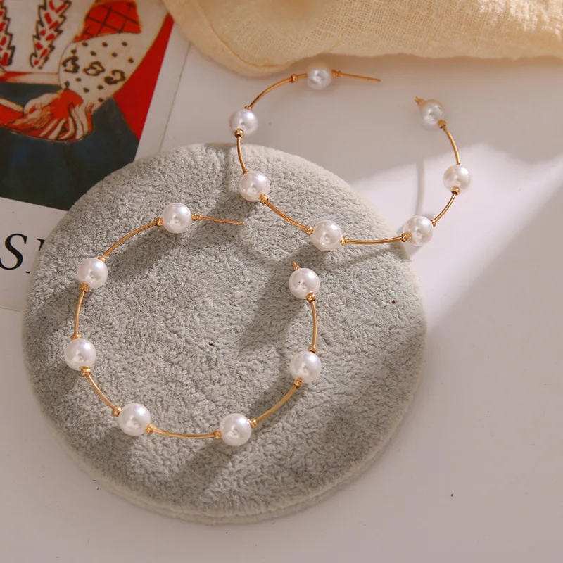 Женские серьги с искусственным жемчугом, серьги в виде больших кругов в ретро стиле