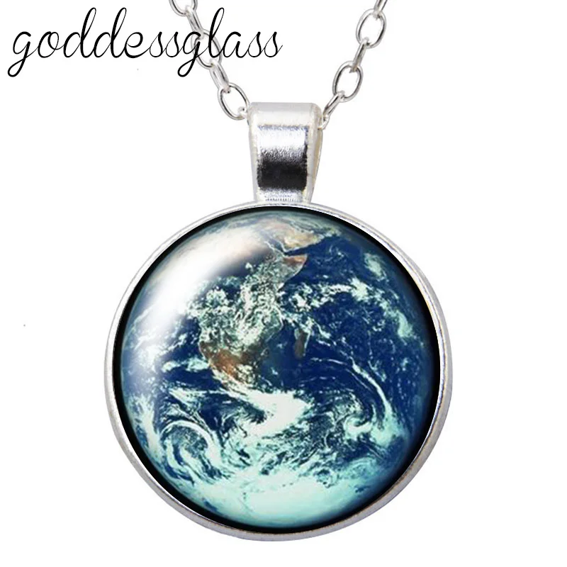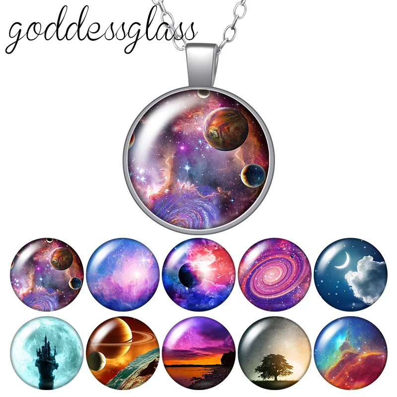 Космическое пространство Планета земля звезды ночь круглый стеклянный кабошон посеребренныйкристалл кулон ожерелье ювелирные изделия для подарка