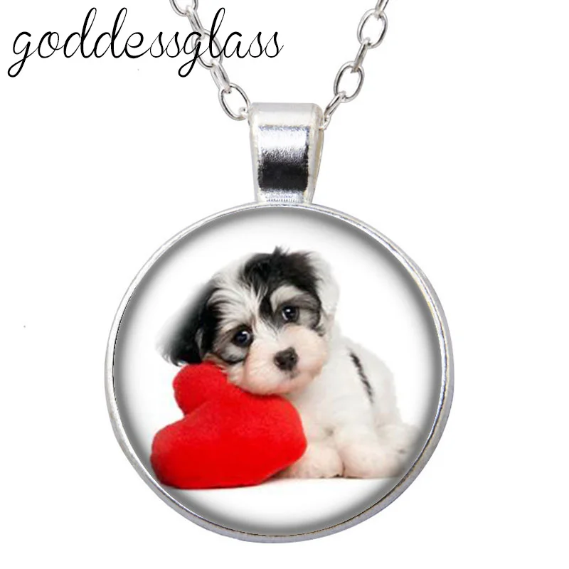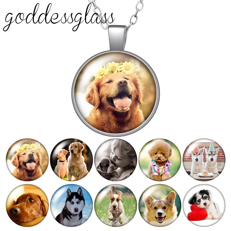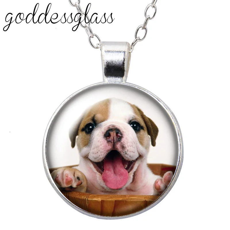 Подвеска в виде собаки, Круглое стекло, кабошон, посеребренноекристаллическое ожерелье, ювелирные изделия для подарка