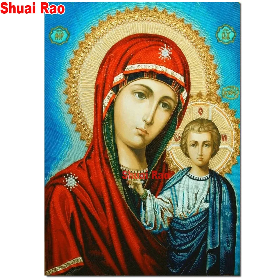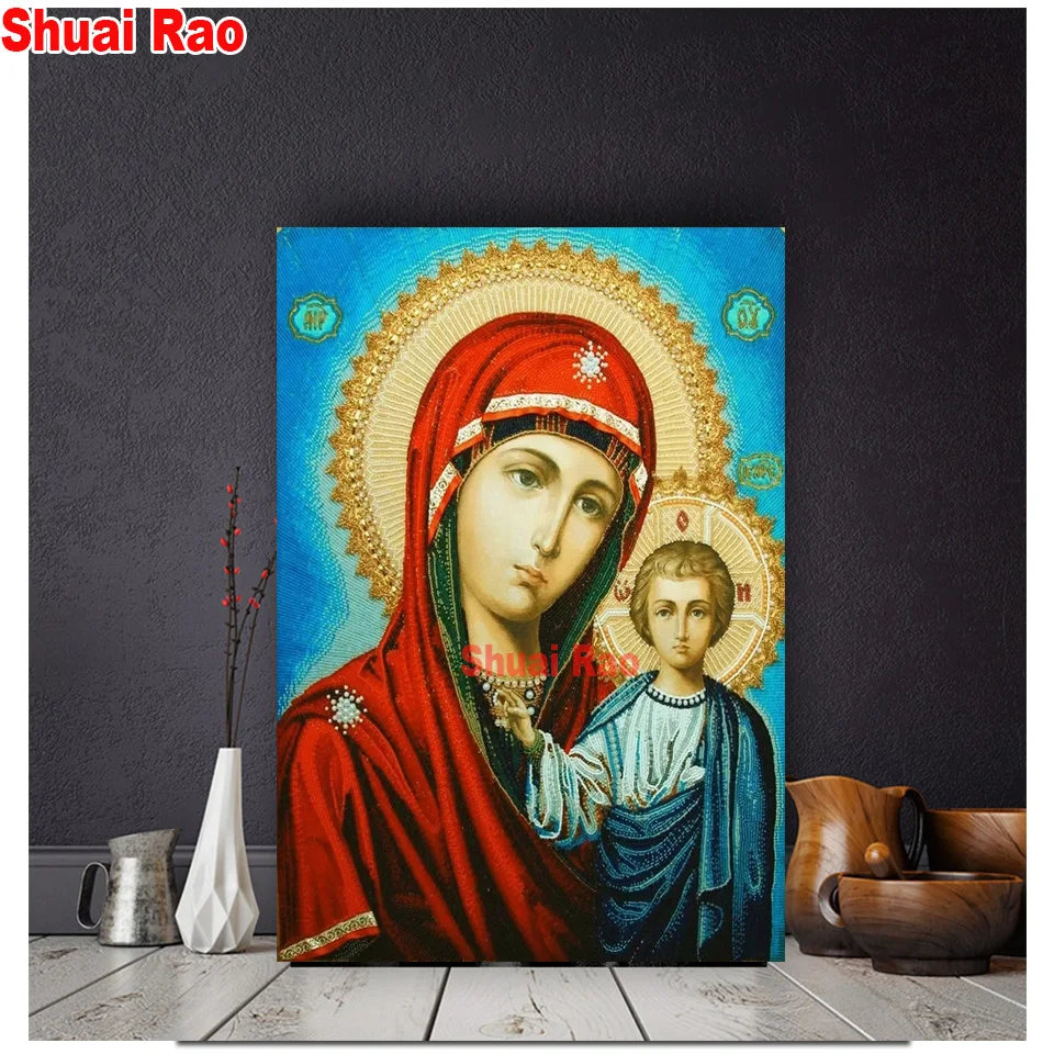 Алмазная вышивка «Богородица и ребенок» 5d «сделай сам» с изображением Божьей матери, полная, круглая, 3d, молитвенный подарок алмазная, мозаичная, религиозная,