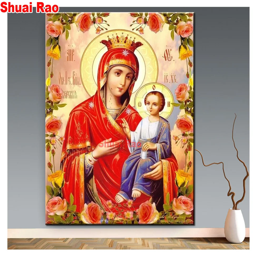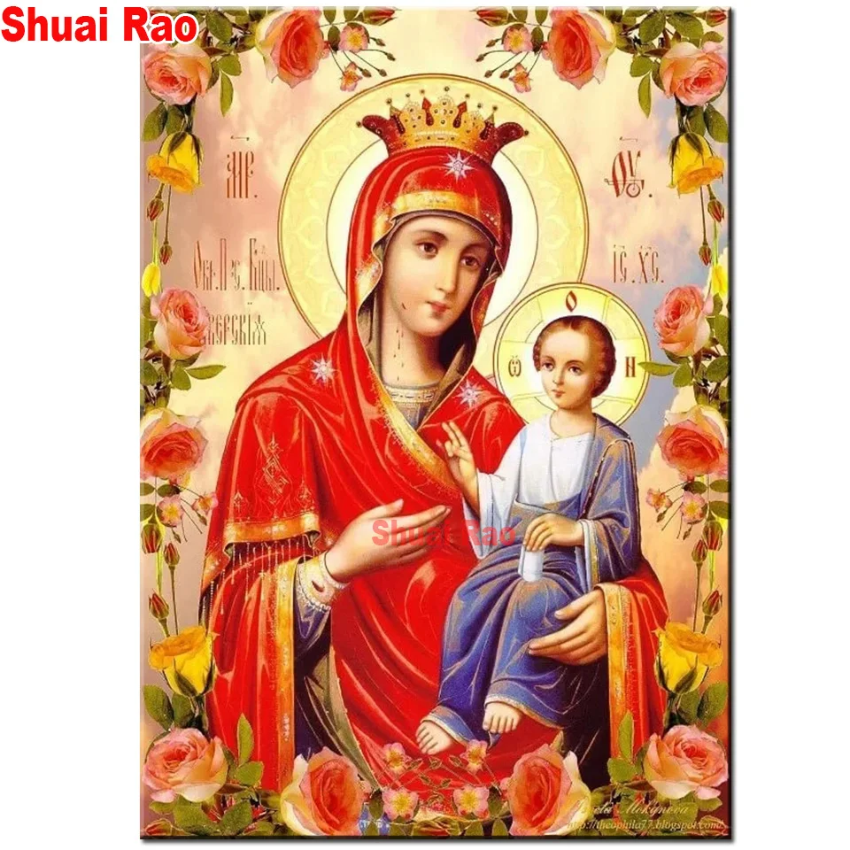 Алмазная 5d Вышивка Мать Бога, полноразмерная, квадратная, круглая, 3d, алмазная, мозаичная, религиозная икона молитвы,