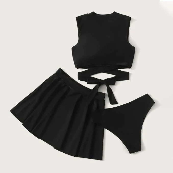 Женский купальник с высокой горловиной, бандажный комплект бикини с пуш-ап и юбкой, из 3 предметов, с буквенным принтом, 2020