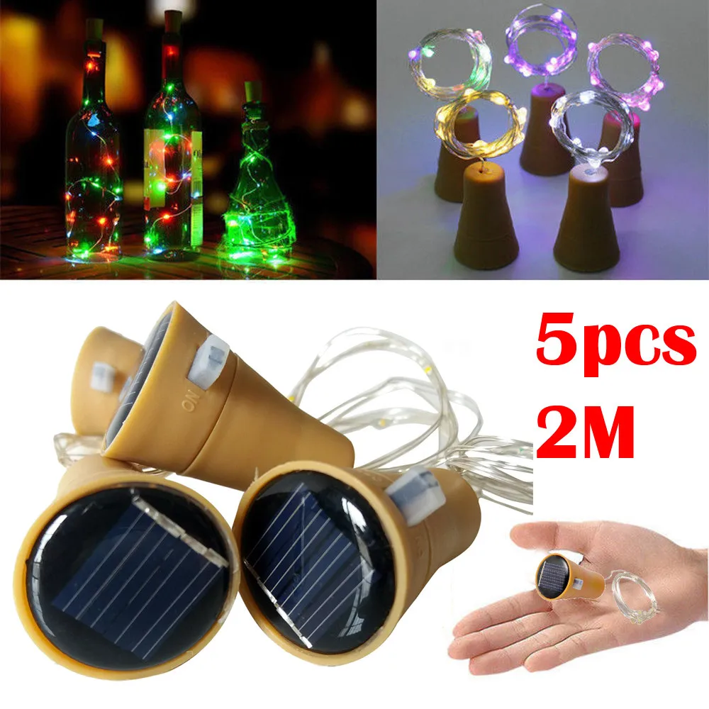 5 шт, длина 2 м, солнечный пробка от бутылки вина Пробка Медный провод гирлянды Фея лампы на солнечных батареях
