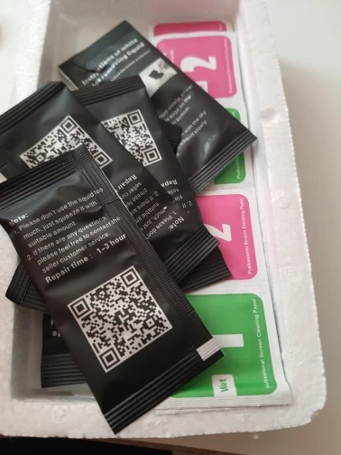 По цене-очень хорошо. Поставляется с 3 влажными/сухими салфетками для очистки экрана телефона. А также поставляется с 2 жидкостями для удаления белых краев, которые, я думаю, используются для очистки экрана телефона после того, как закаленное стекло вытягивается с экрана телефона. Я доволен товаром.