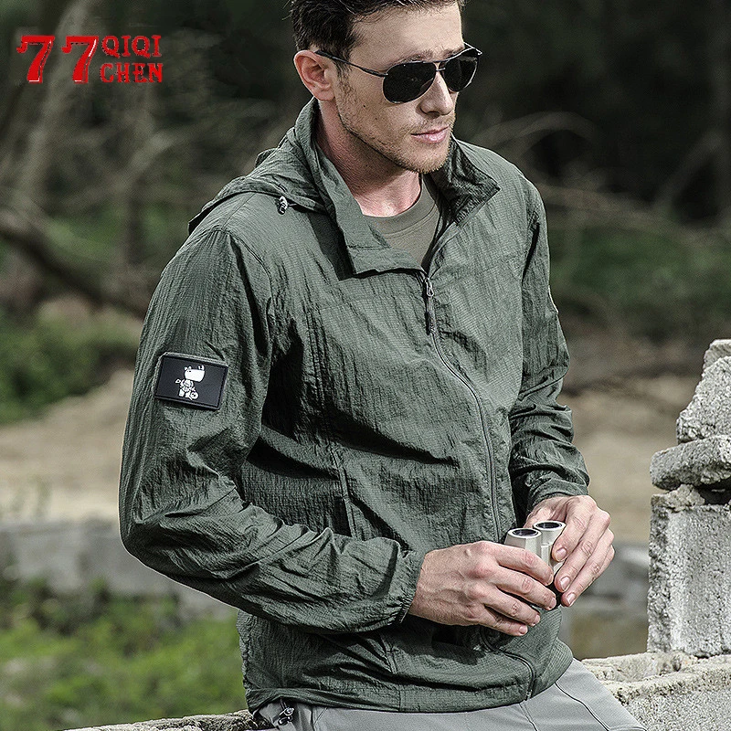 QIQICHEN быстросохнущая кожаная куртка для мужчин Тактический водонепроницаемый плащ тонкая ветровка с капюшоном 2020 летняя Солнцезащитная армейская военная куртка 5XL