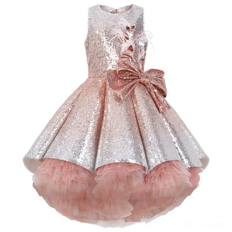 Блестящие платья с блестками и цветами для девочек, тюлевые многоярусные платья без рукавов для свадьбы, пышные платья для девочек для выпускного вечера