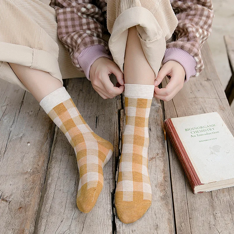 Классические носки из 100% хлопка, хит продаж, женские носки в клетку, женские носки до щиколотки, женские носки для девочек, носки до щиколотки, женские носки