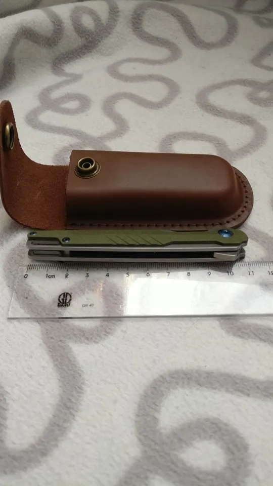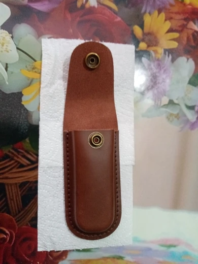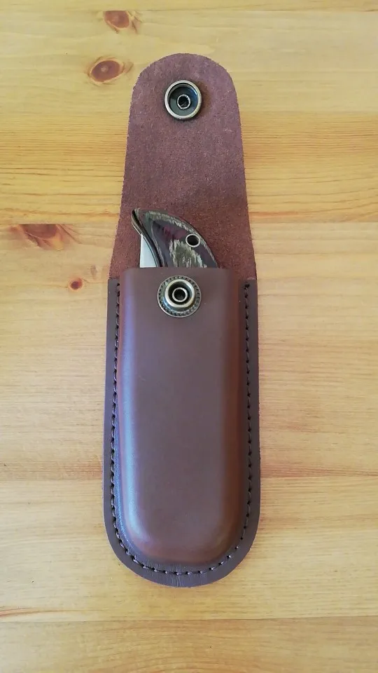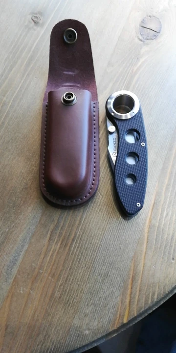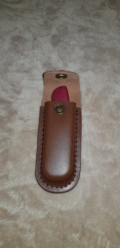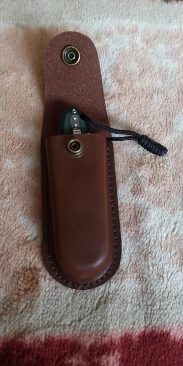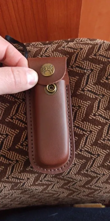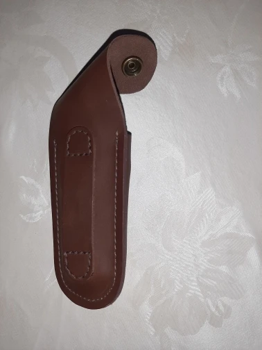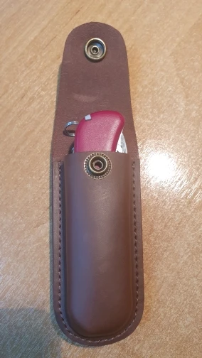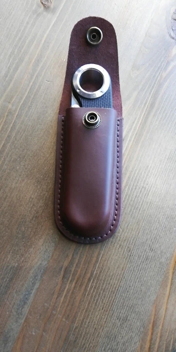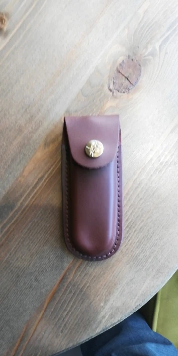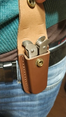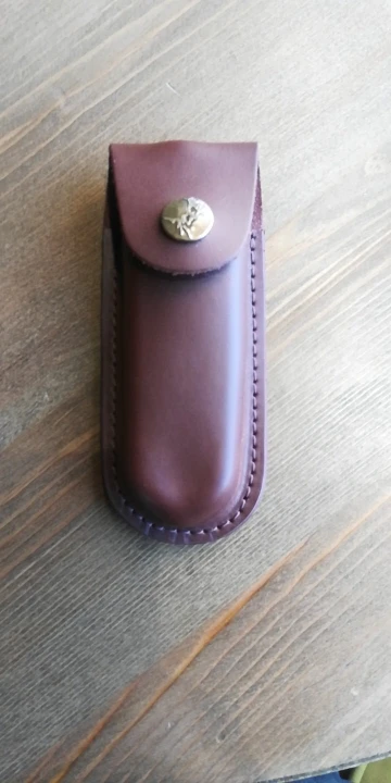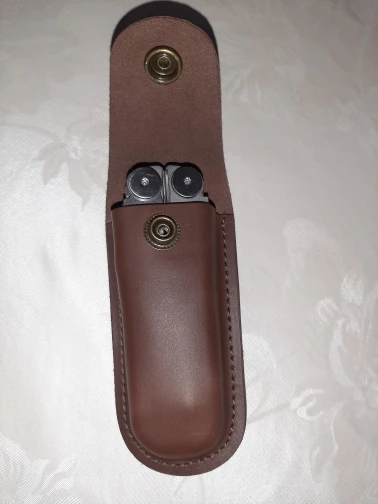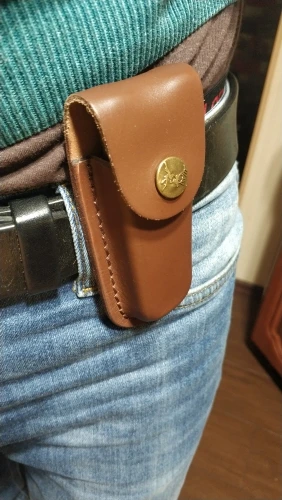 Покупал для мультитул Leatherman. Подошел хорошо, по обхвату - входит и выходит легко, по длине чехол длиннее на 1 см. Кожа гладкая, толстая, есть небольшой запах. Кнопка сильная.