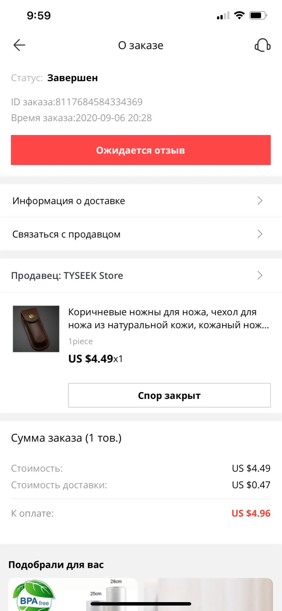 Здравствуйте уважаемые покупатели, я оплачивал Кабуру для ножа, трек отслеживался но до меня не дошло, прошло три месяца, но товара нету, открыл спор, спор без причины взяли закрыли, денег не вернули, короче говоря продовца не рекомендую они всеровно обманут, не ошибитесь, спосибо за вниманий.