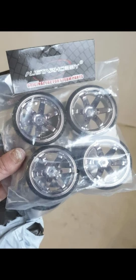 Колеса выглядят так, как описано, качество изготовления хорошее, и доставка была очень быстрой. Колеса идеально сидят на ступицах hex12, и шины имеют меньший захват, как я хотел. Спасибо.