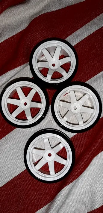 Очень хорошее качество, резина средней твердости, что позволяет лучше контролировать скольжение и идти быстрее, они имеют внешнее смещение, что делает автомобиль более широким и стабильным, по сравнению с оригиналами, мой автомобиль-команда Magic e4d MF. Я очень доволен покупкой, я обязательно повторю, когда две полученные мной игры