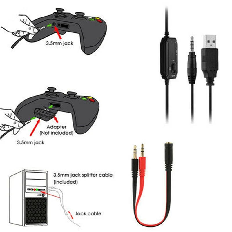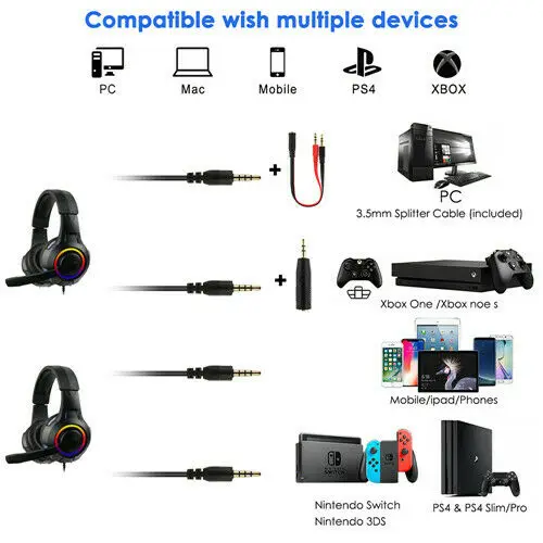 Профессиональная накладная Проводная гарнитура с микрофоном, игровые наушники со светодиодной подсветкой для компьютера, PS4, регулируемые басы, стерео, подарки для ПК, 1 шт.