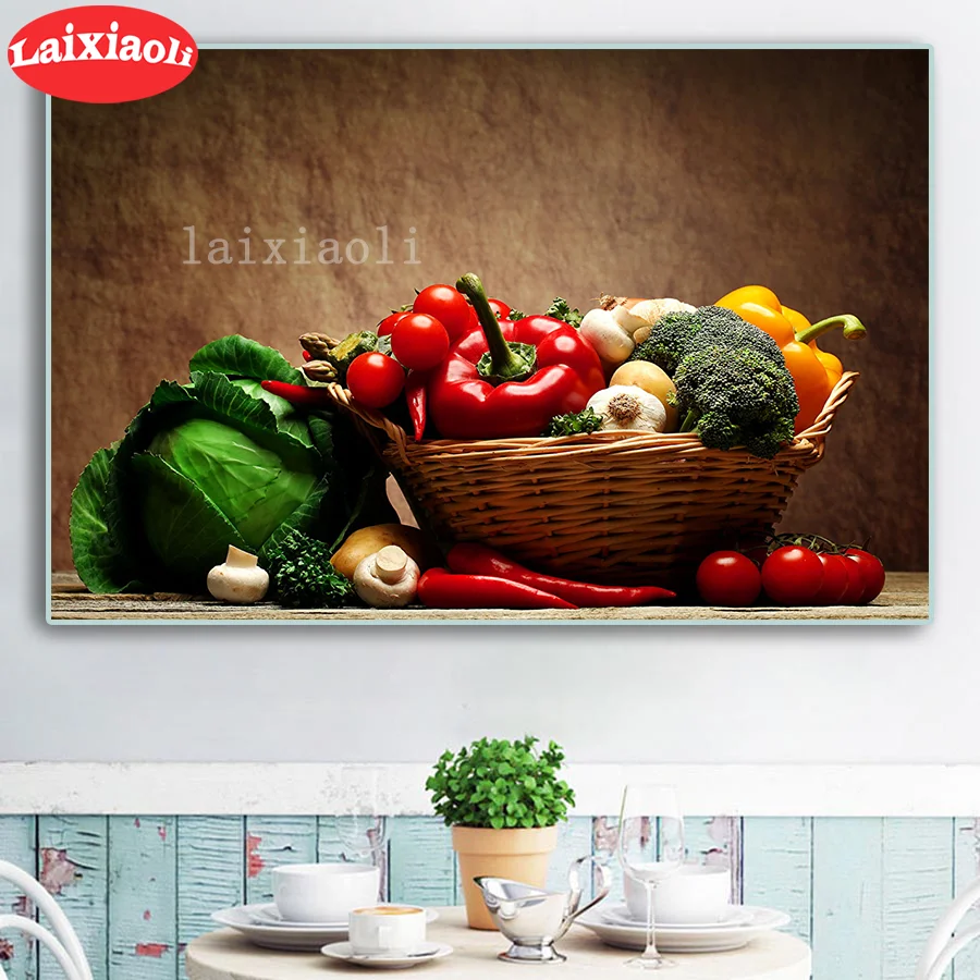 Алмазная вышивка "сделай сам" с изображением фруктов и овощей, Подарочная квадратная Круглая Мозаика из страз