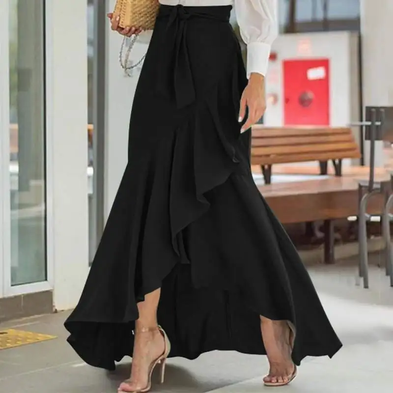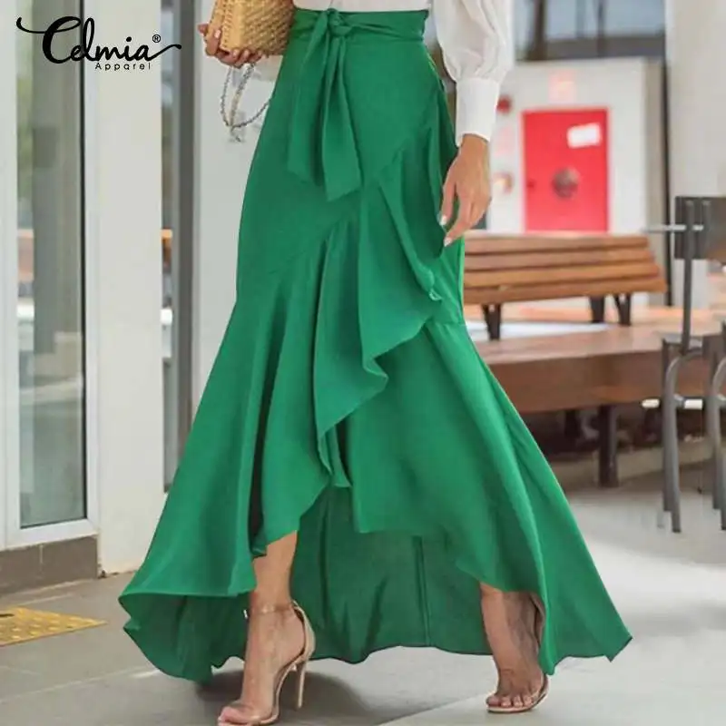 Юбка Макси Celmia женская с высокой талией, элегантная повседневная Вечерние ная вечерняя юбка-годе с поясом, модная длинная юбка с оборками