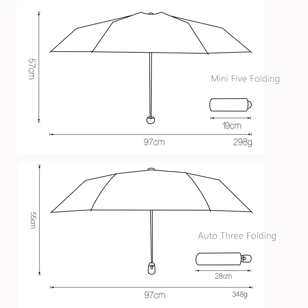 Прекрасный дизайн рисунка делает зонтик более отличным, автоматический три складывания и мини размер пять складной зонтик для вас, анти УФ солнцезащитное черное покрытие защитит вашу кожу на солнце. 8k Скелет Прочный и ветрозащитный.