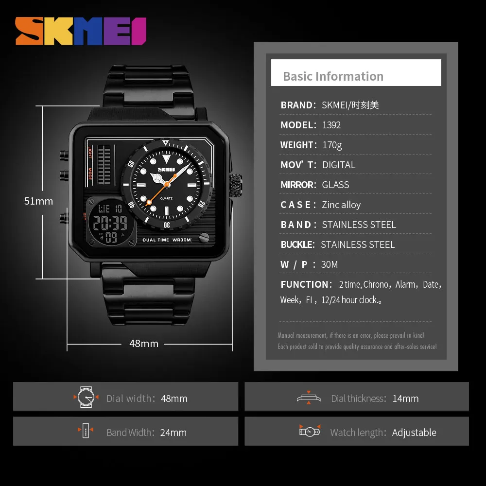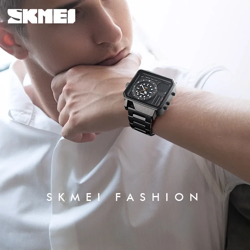 SKMEI цифровыеКварцевые часы для мужчин с ремешком из нержавеющей с...