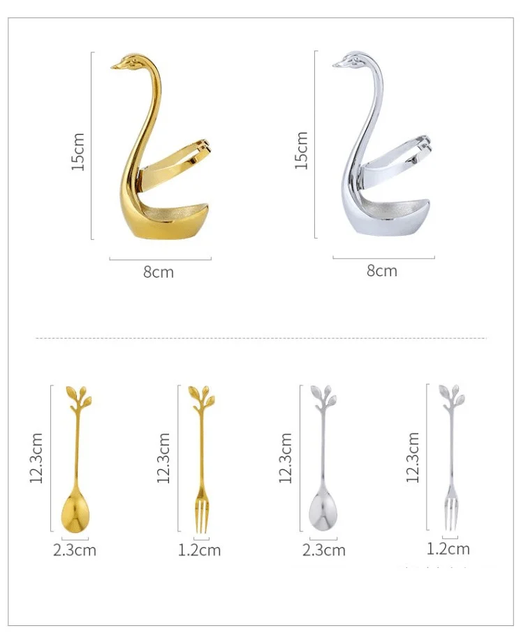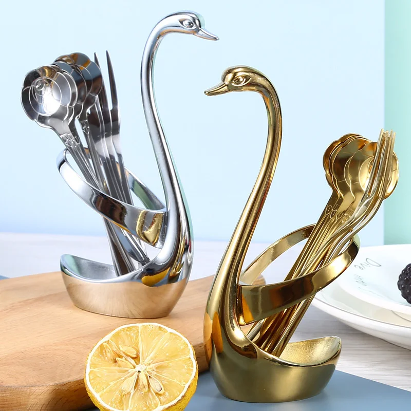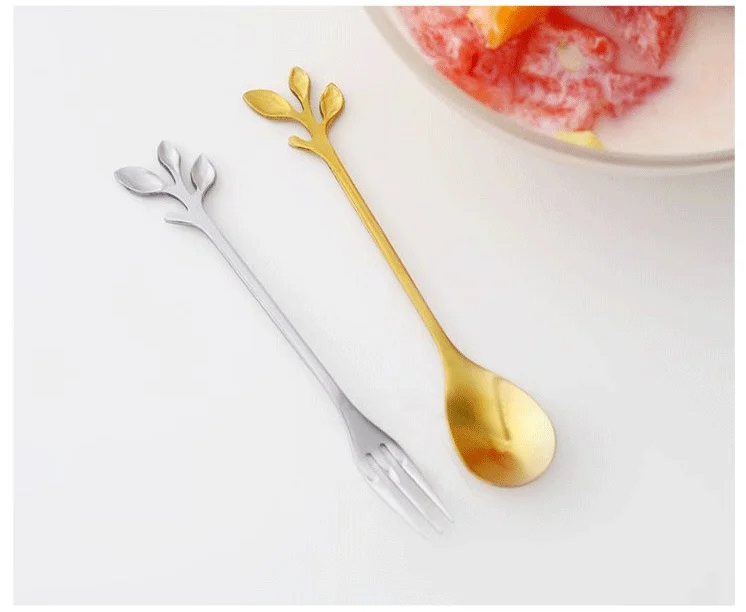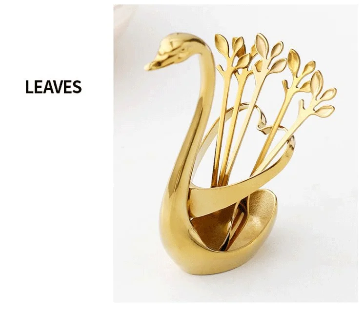 Столовая посуда, набор золотых фруктовдесертов, набор столовых приборов для держателя под лебедь, вилки с серебряными листьями, портативная чайная ложка