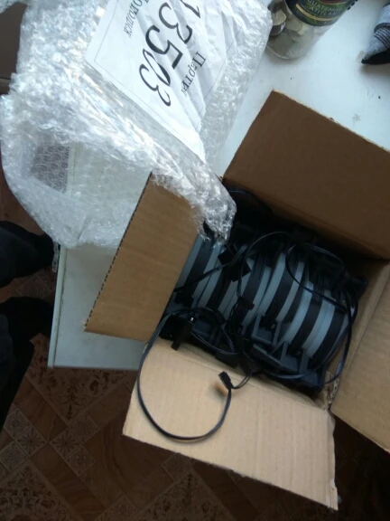 Ооооочекнь долгая доставка, несмотря на быструю отправку. Заказывал 11.11 забрал 22.02. Зависли на таможне. Когда открывал спор, заметил, приписку, что не стоит открывать спор до 21.02, так что рано я запаниковал, т.к. открыл спор 20.01. Товар соответствует описанию, светодиодных полосок три, спереди, сзади в на внутреннем радиусе. Заказывал 8шт, все работают, упакованы добротно. Пришли в коробках, внутри пупырчатая пленка. В комплекте к каждому стандартные винты для крепления. Подключения 3pin и Molex. Один кулер слегка подколхозил для установки на башню. Единственный кулер, который подключил через 3pin, но в биосе настройки менять не пришлось, т.к. светит так же ярко. Смазаны хорошо. В общем, кульками доволен, посмотрим как себя поведут. З.Ы. Один кулек слегка звенел, но разобрал, почистил спиртом магнит, смазал маслом и все стало хорошо.