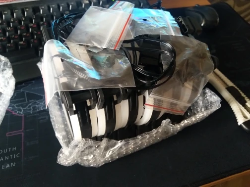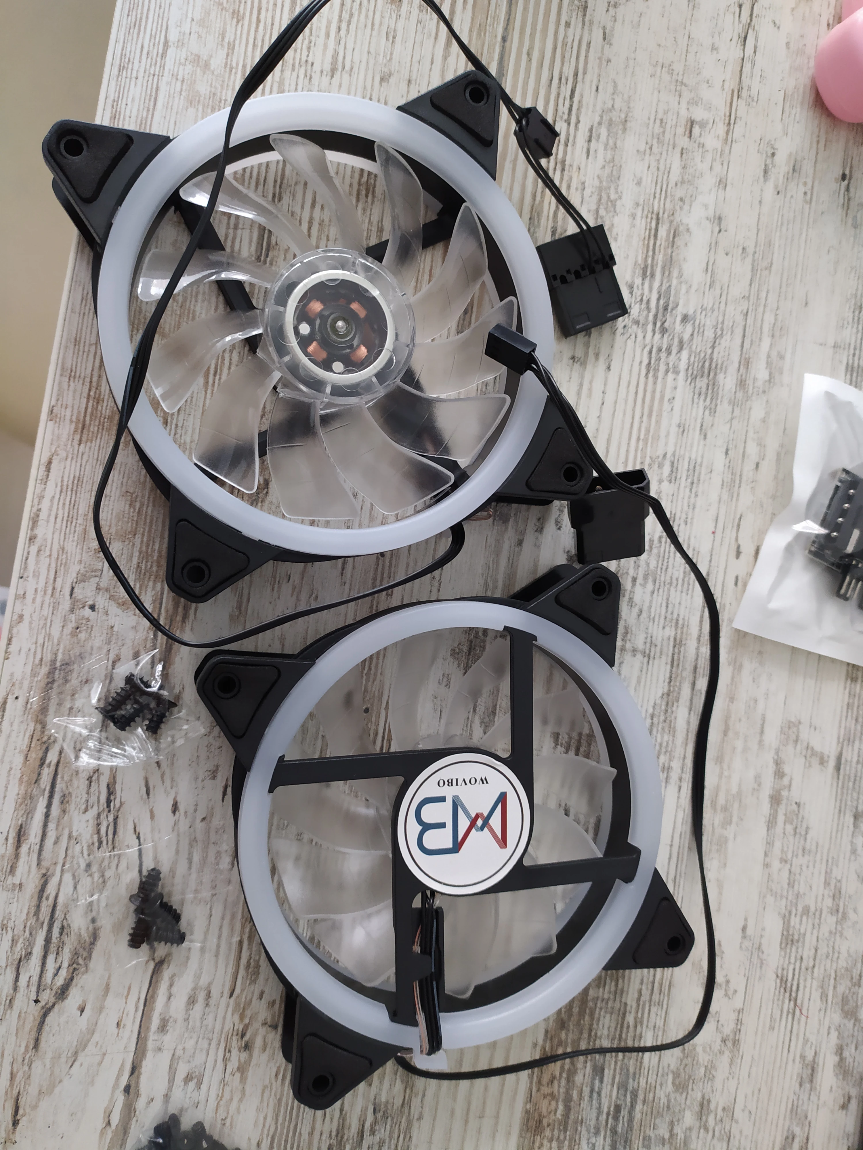 Ждал вентиляторы 80+ дней. По территории России не трекались. Открывал спор, но Али просил ждать ещё. Дождался. Из 6 пакетиков с саморезами, в 2 были ржавые :( Из плюсов - Светят. Из минусов - Не дуют практически. Это на максимальных оборотах! Полносишь руку и потока воздуха не ощущаешь. До этого стояло 3 вентилятора на вдув, один на выдув. Вот они реально дули. Температуры были ниже. Поэтому брать только для красоты. Функционально вентиляторы слабы.
