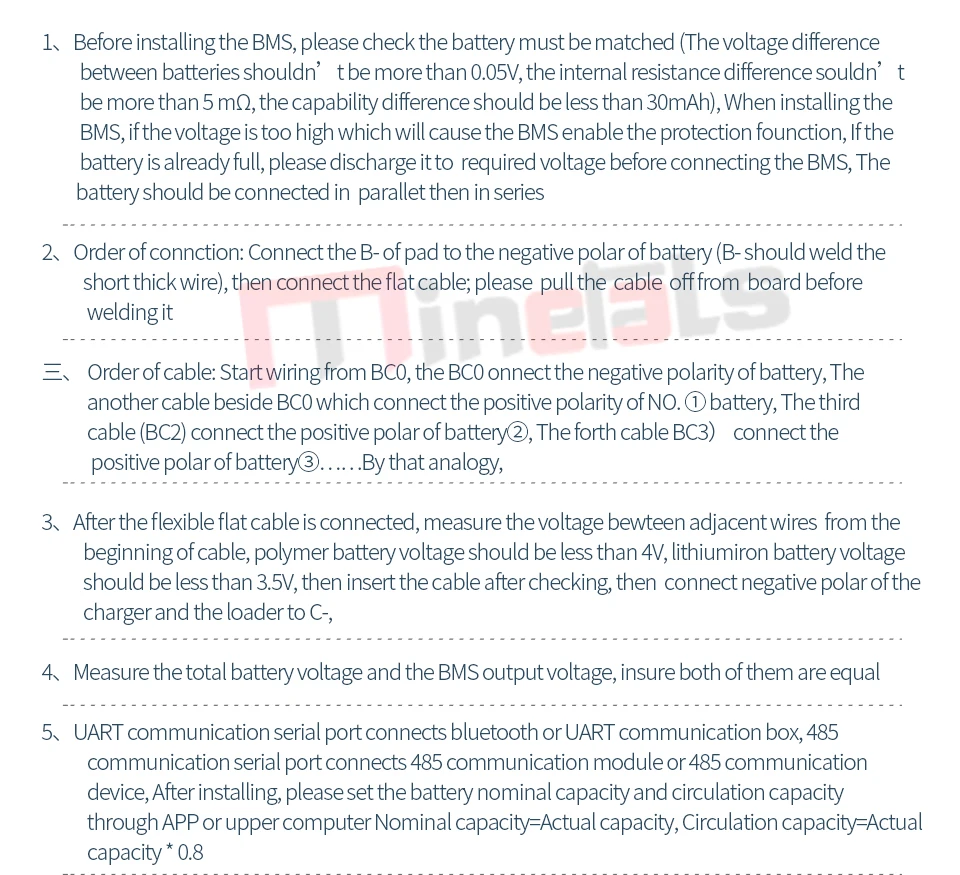 1. Если вам нужно подключить ваш мобильный телефон, вам нужно купить BMS с коммуникационная плата интерфейса UART порт или UART/485 двойной порт связи, а затем добавить модуль bluetooth.2. Если вы Подключите компьютер только для чтения данных, вам нужно купить BMS, затем добавить UART box или 485 модуль,3. Если вам нужно подключить ПК и мобильный телефон, пожалуйста, купите UART/RS485 двойная связь BMS, затем купите модуль Bluetooth и Модуль RS485Примечание: RS485 Одиночная связь может подключаться только к программному обеспечению верхнего компьютера, не может быть подключен к модулю Bluetooth и программному обеспечению верхнего компьютера одновременно