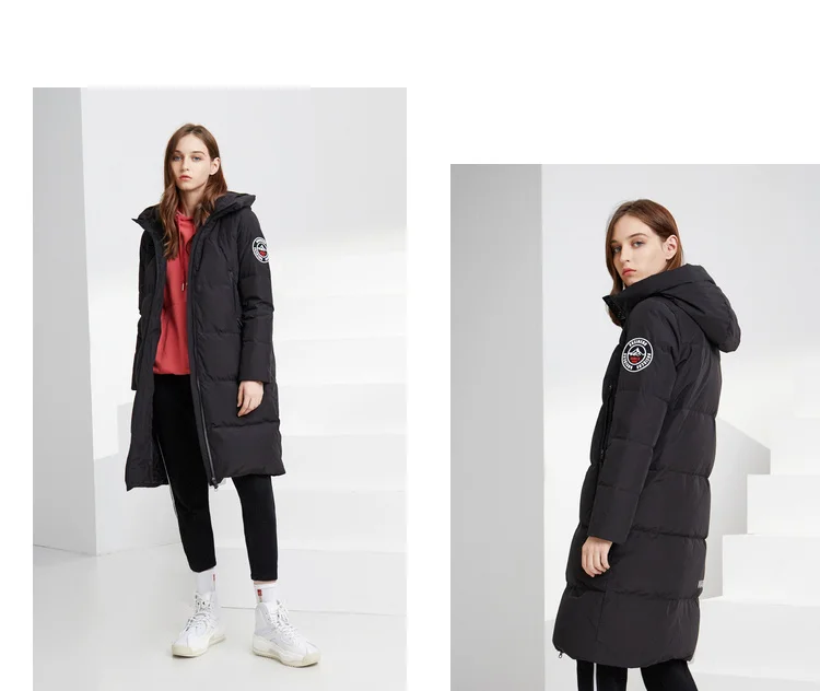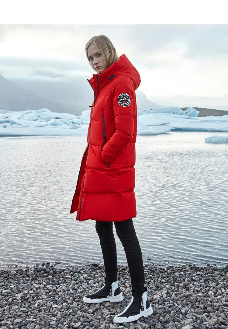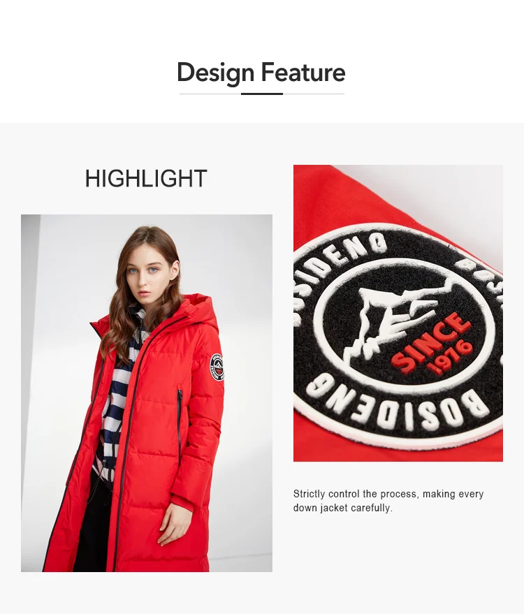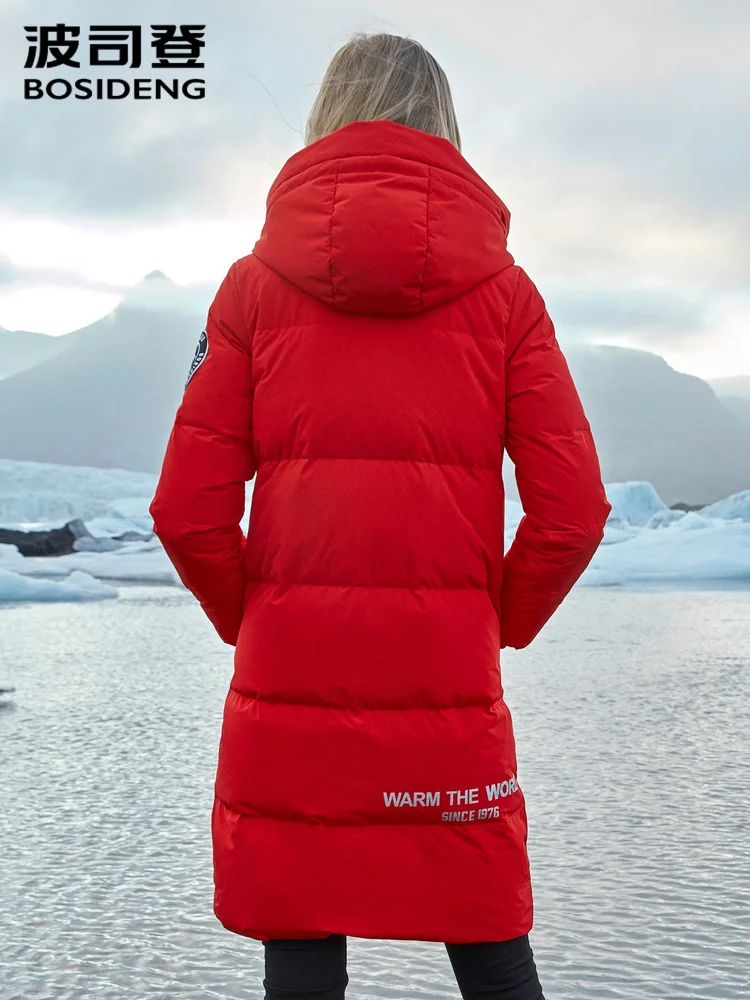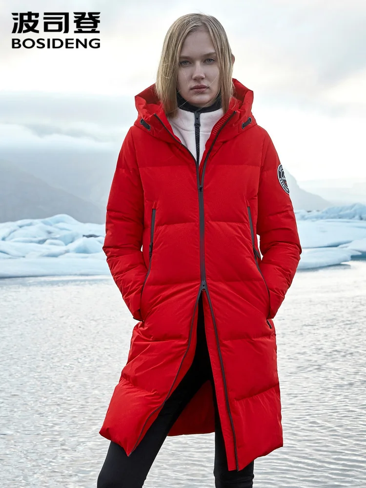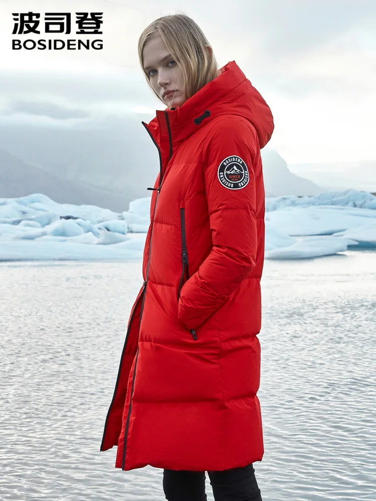 BOSIDENG Женская ульсветильник куртка на утином пуху с капюшоном для зимы средней длины ветрозащитная парка высокое качество зимнее пальто b90142316