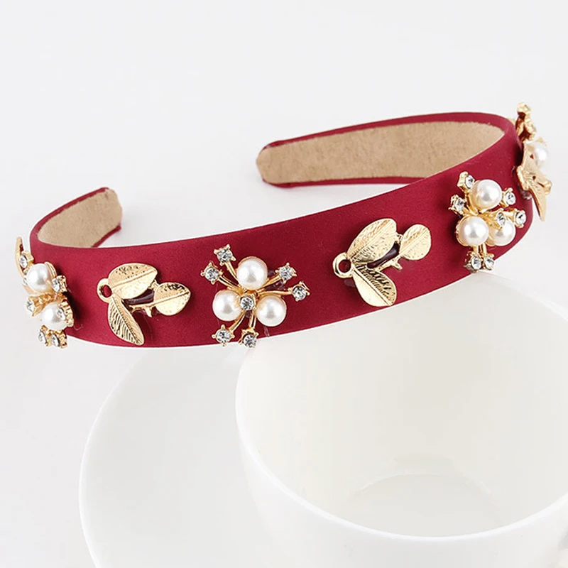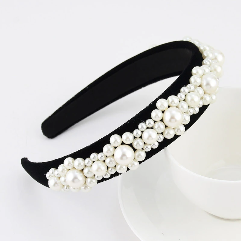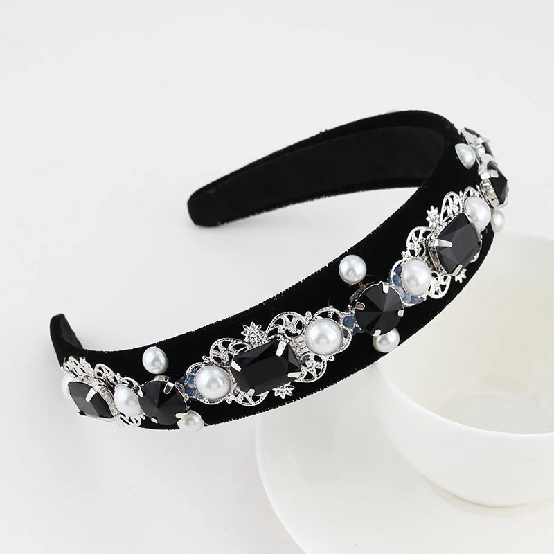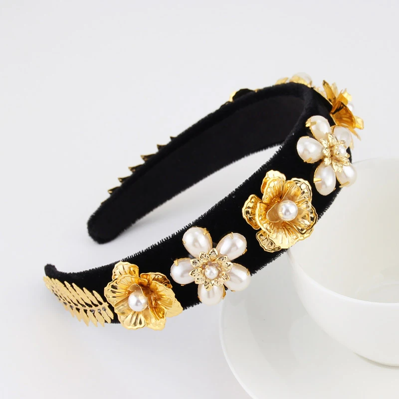 Повязка на голову женская с жемчугом и кристаллами, 2020, Цветочная...