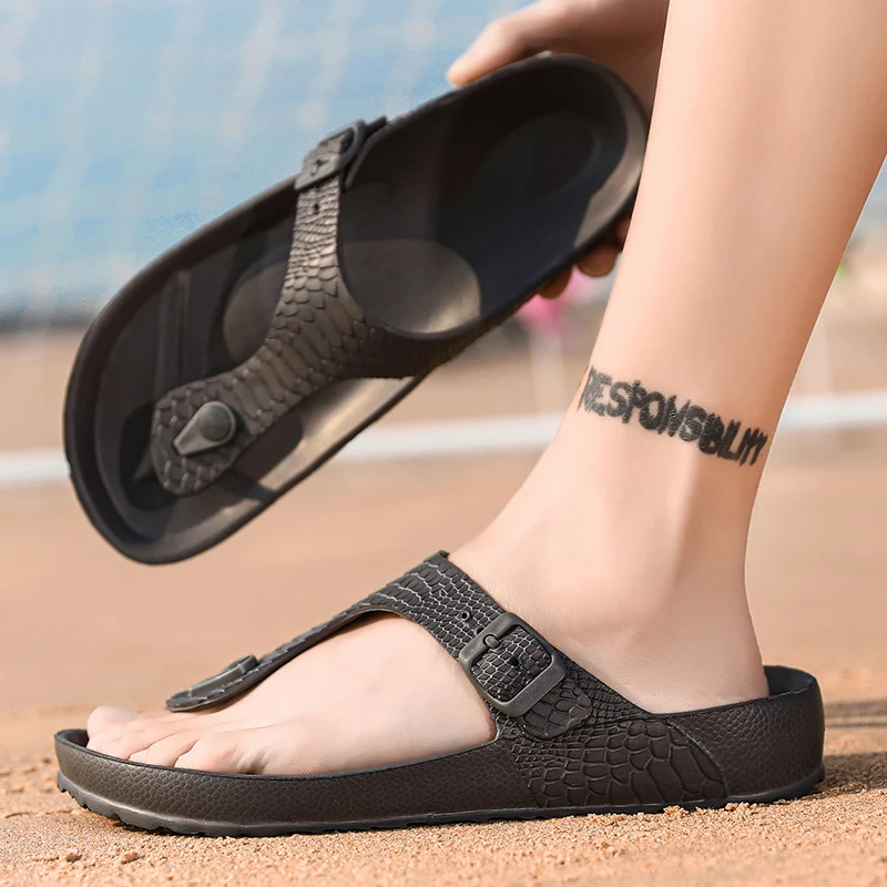 Летние мужские сандалии, дышащие пляжные шлепанцы с подкладкой, одн...