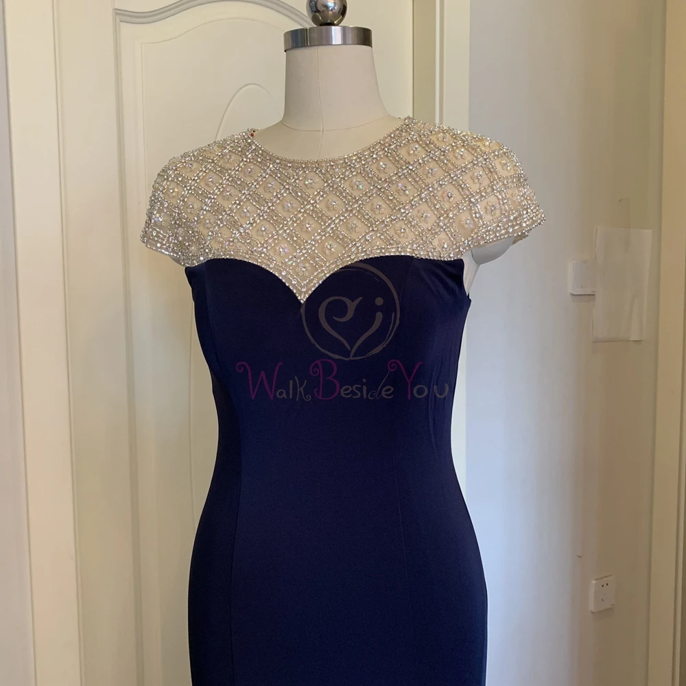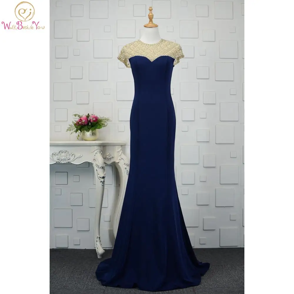 Женское атласное вечернее платье, элегантное темно-синее платье с длинными рукавами-крылышками, расшитое бисером, с вырезом на спине, платье для выпускного вечера, 2020