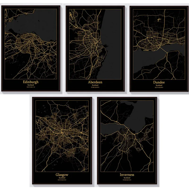 Aberdeen Dundee edinside Глазго инвересс DIY алмазная живопись 5D Черное золото Scotland Map Алмазная вышивка домашний декор