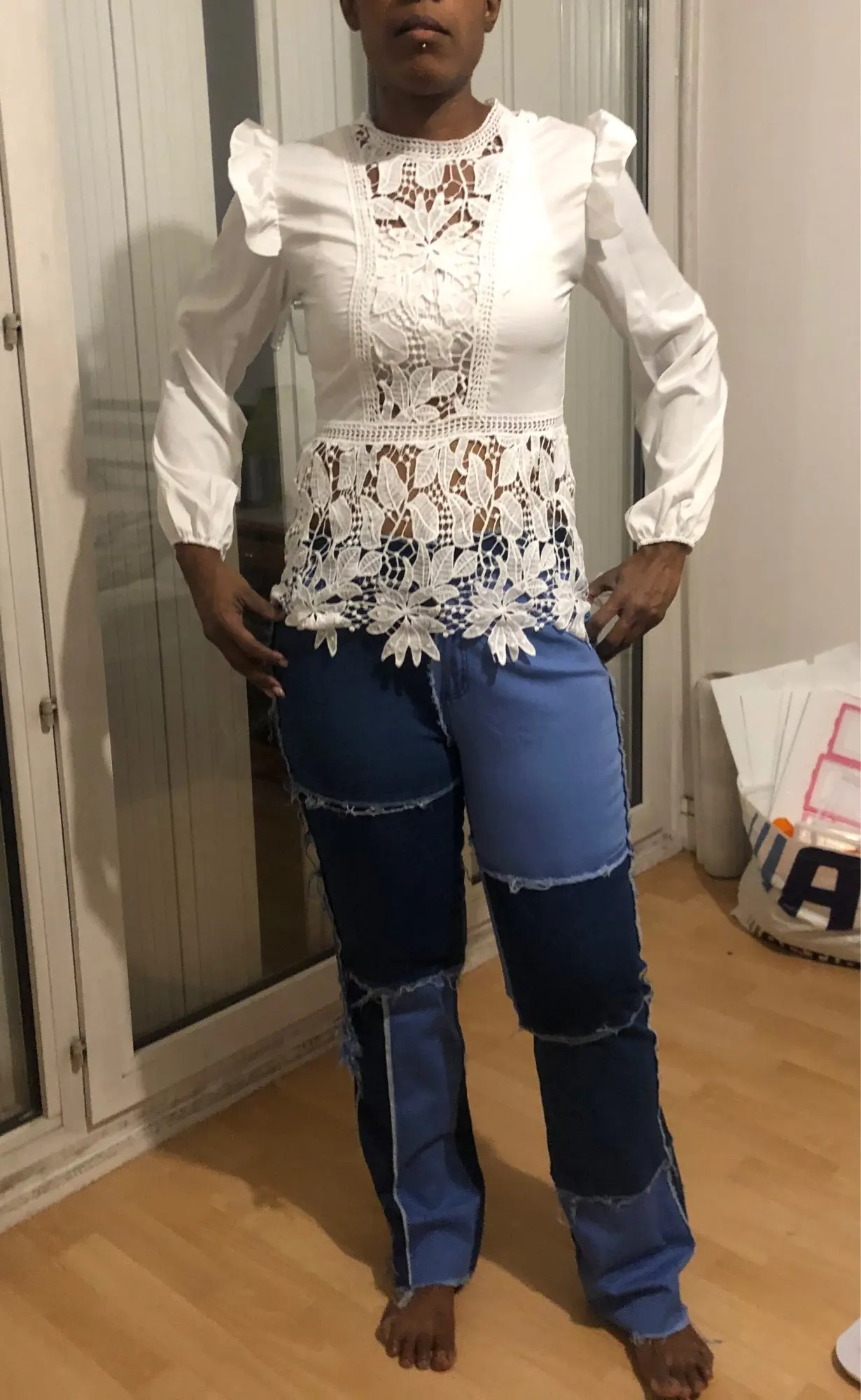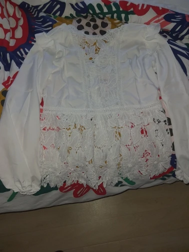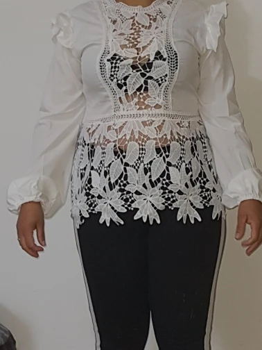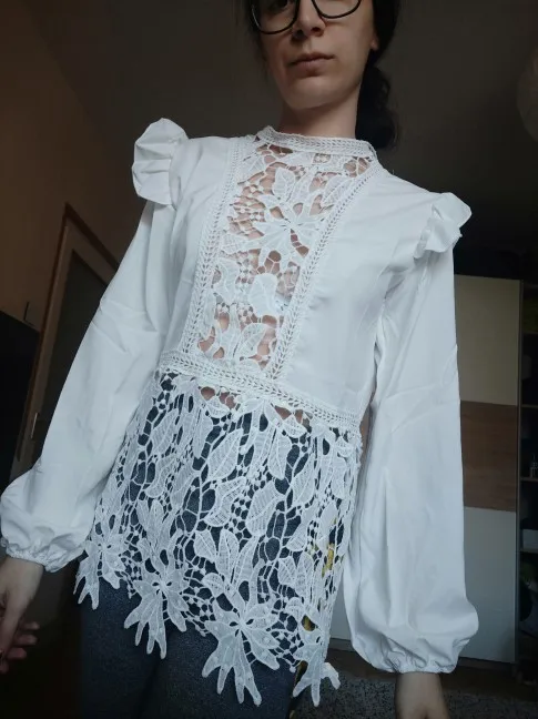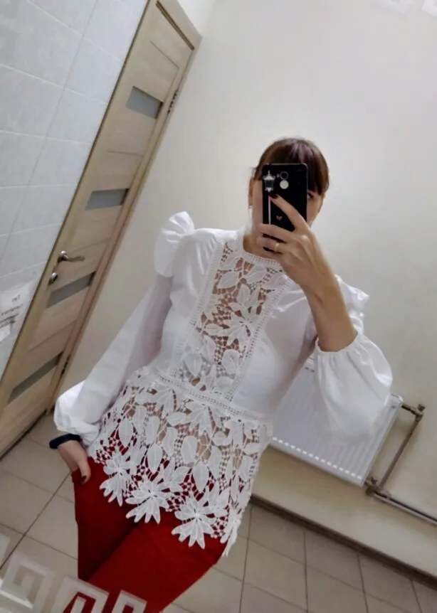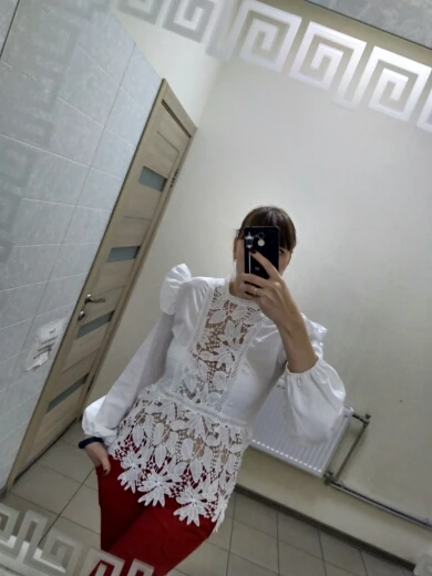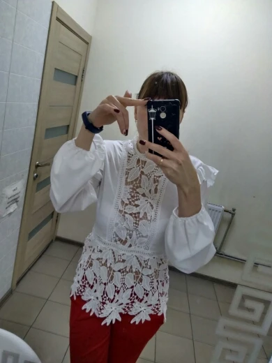 Просто бомбическая блузка, очень красивая, все хорошо прошито, нитки не торчат, кружева очень красивые. Советую))
