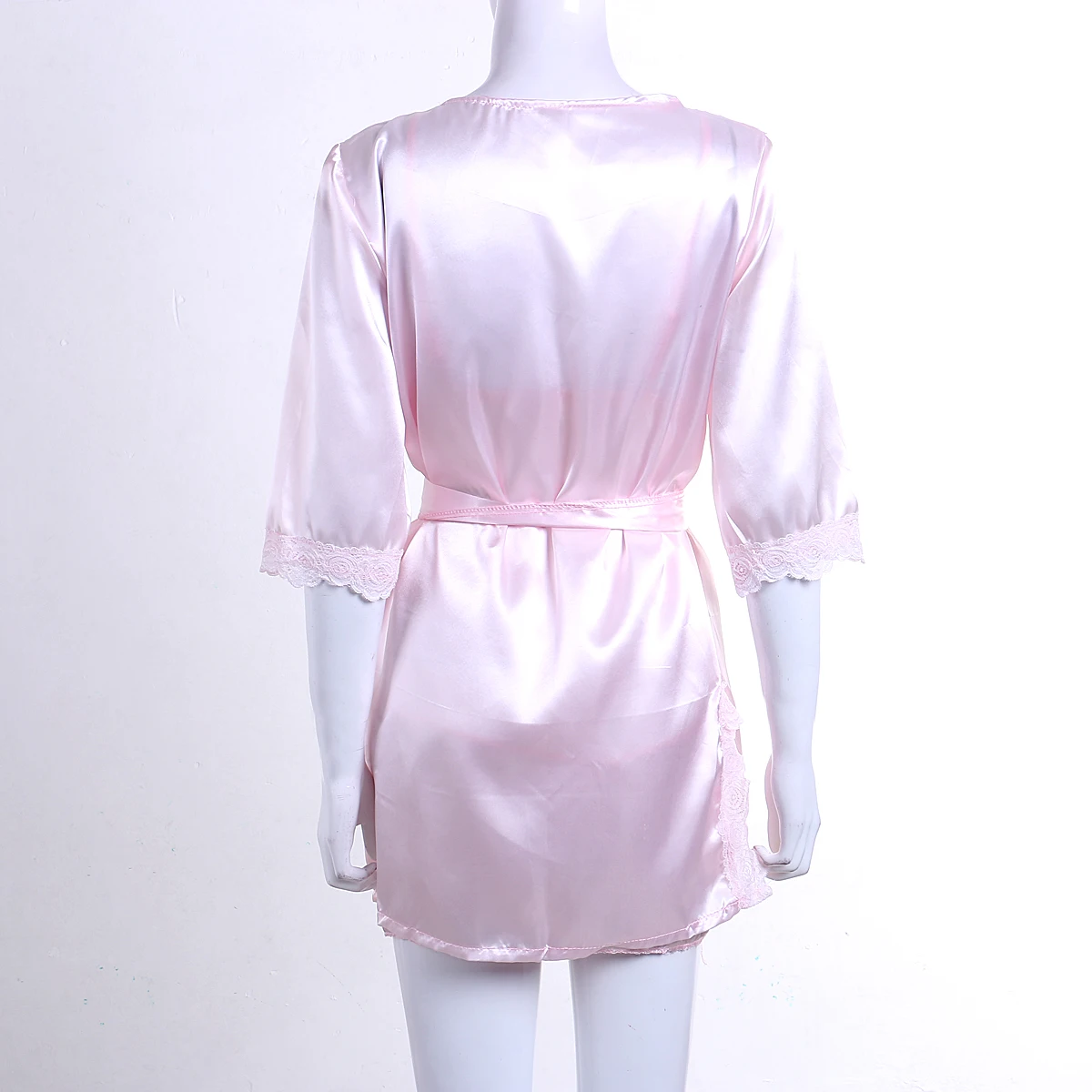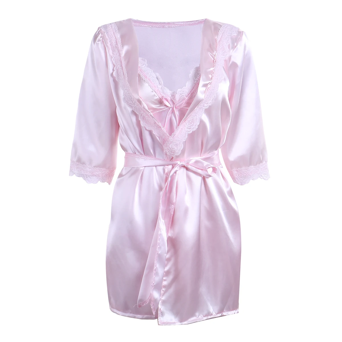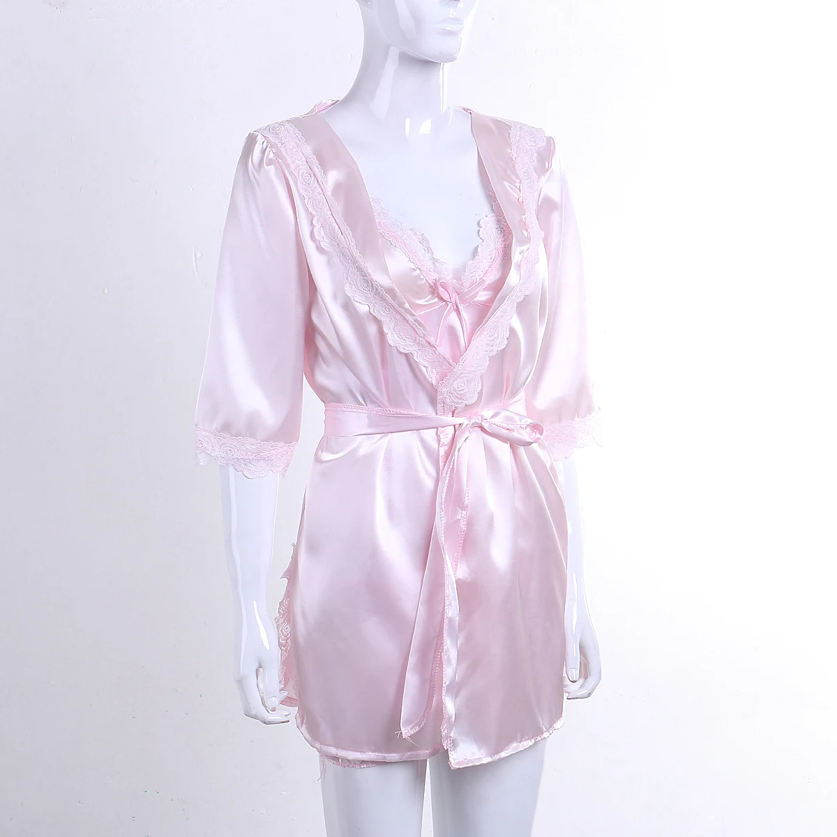 Розовый кружевной халат Женское бельё Пижама комплект из 3 предмето...
