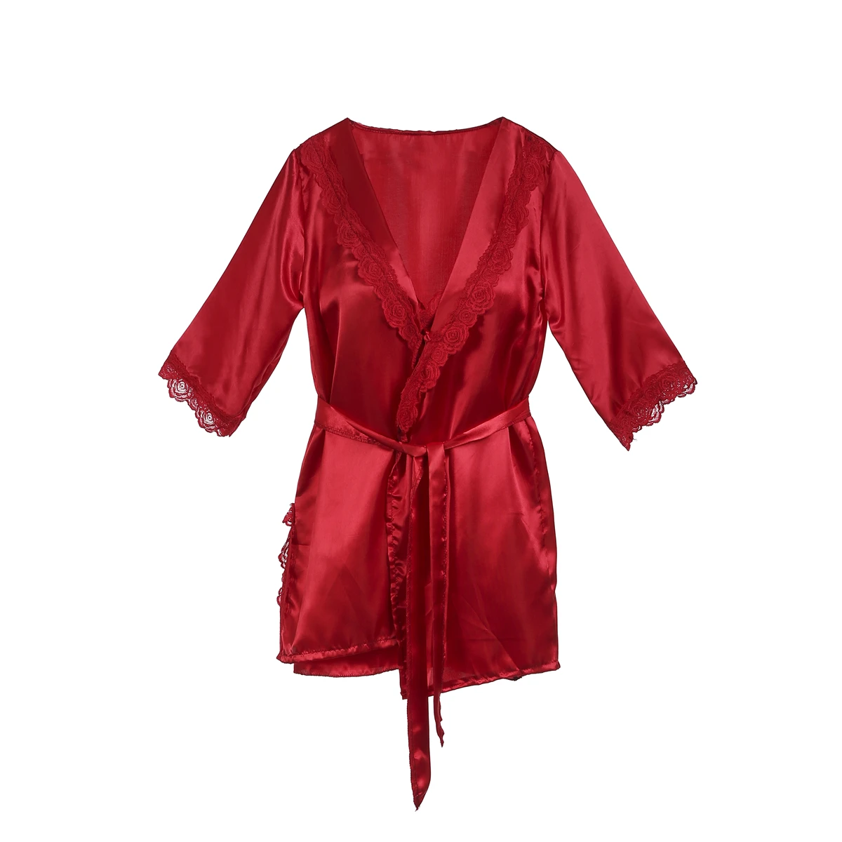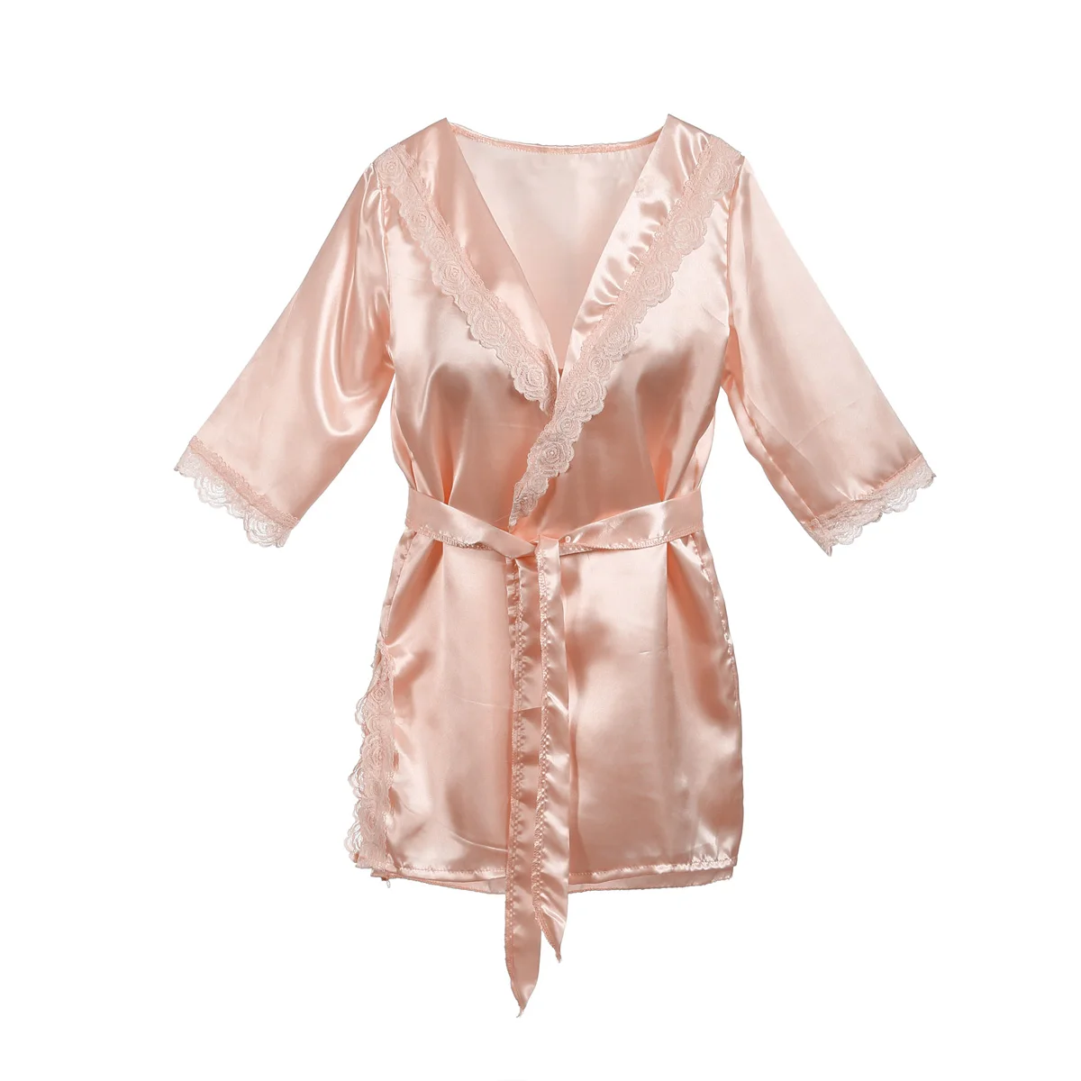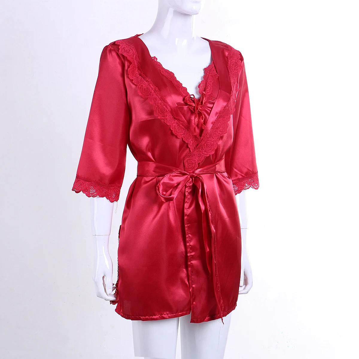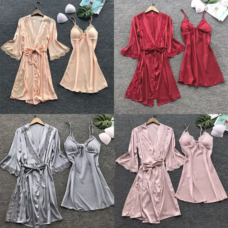 Женский шелковый халат, комплект одежды, летний Пижамный кружевной ...