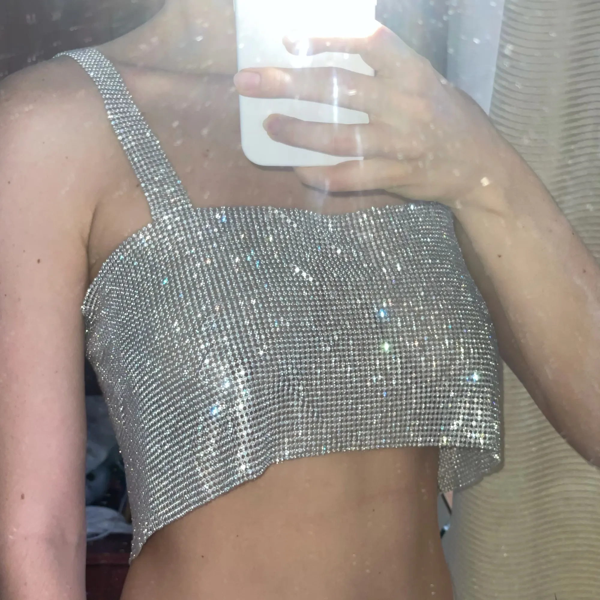 Летний новый стиль сексуальный женский ночной клуб вечерние блестящие прозрачные стразы металлическая цепочка Холтер драпированный бюстгальтер короткий топ на бретелях