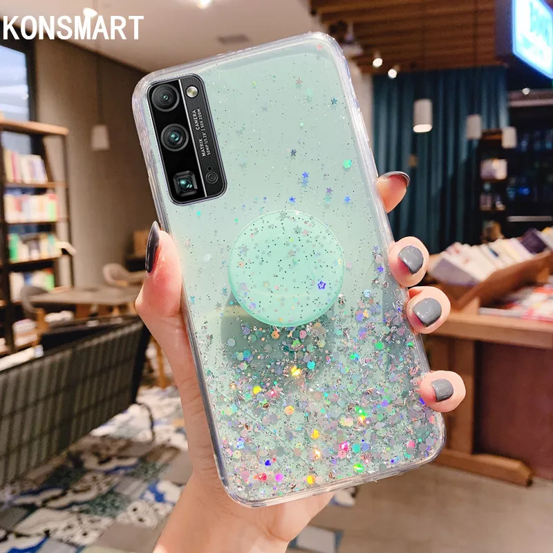 KONSMART блестящий чехол для Honor 30 Pro Plus, Роскошный прозрачный силиконовый мягкий чехол-накладка для Huawei Honor 30 Pro + чехол для телефона с держателем