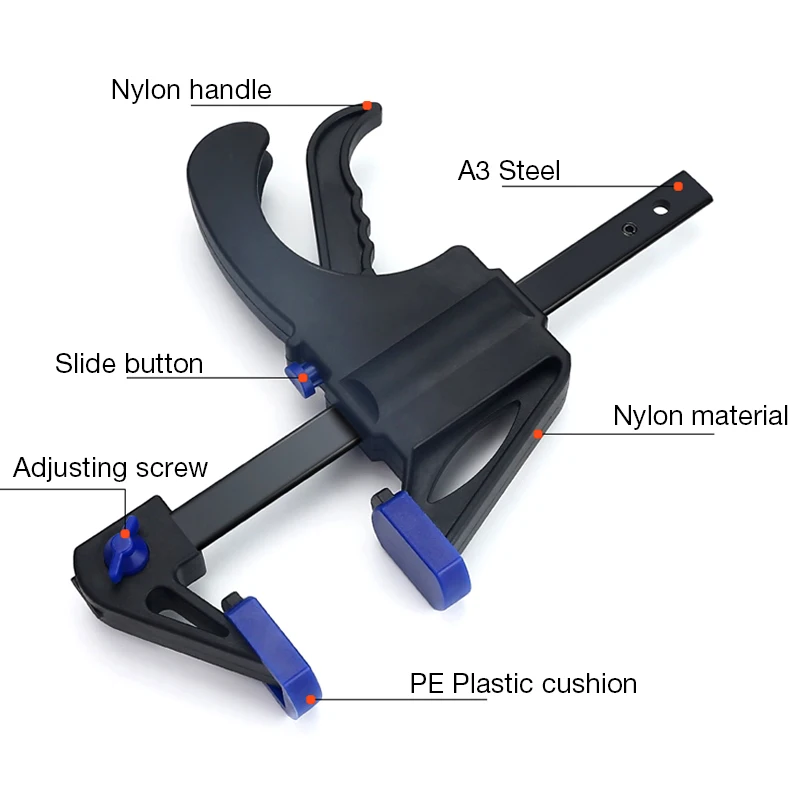1: усиленный нейлоновый материал: прочный для использования.2: идеально подходит для упаковки, столярных работ и мебельных проектов.3: хороший инструмент для быстрой деревообработки, ручной работы, Diy ручной работы...4: простота в обращении и удобство в использовании.5: плотно крепится, не повреждая и не царапая поверхности.6: Использование подсказок:Нажмите кнопку быстрого спуска, чтобы освободить челюсть, а затем сдавите спусковой механизм, чтобы нажать кнопку «ure».После установки, челюсть заблокирована и не будет смещаться.Когда работа закончена, просто нажмите кнопку быстрого спуска, чтобы отпустить заготовку.Характеристики:Продукт: F зажим для обработки дереваМатериал: пластикЦвет: как на фото