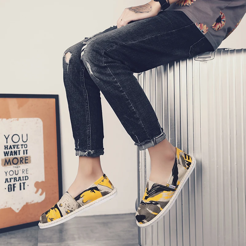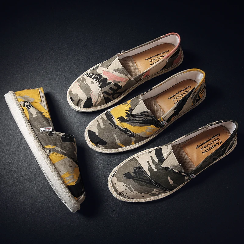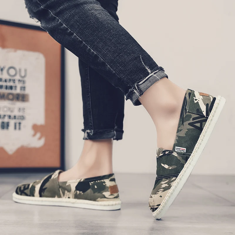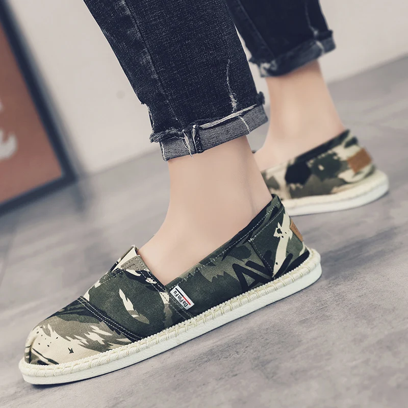 Холщовые мужские туфли, камуфляжные лоферы, дешевые, без шнуровки, эспадрильи, Повседневная дышащая обувь, Прямая поставка, Rozoball