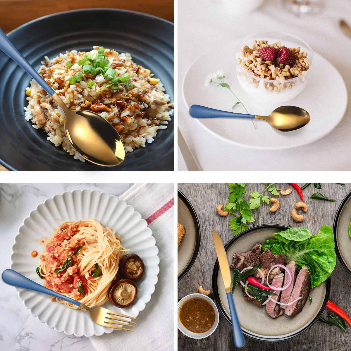 Набор столовых приборов из нержавеющей стали, золото серебряные сто...